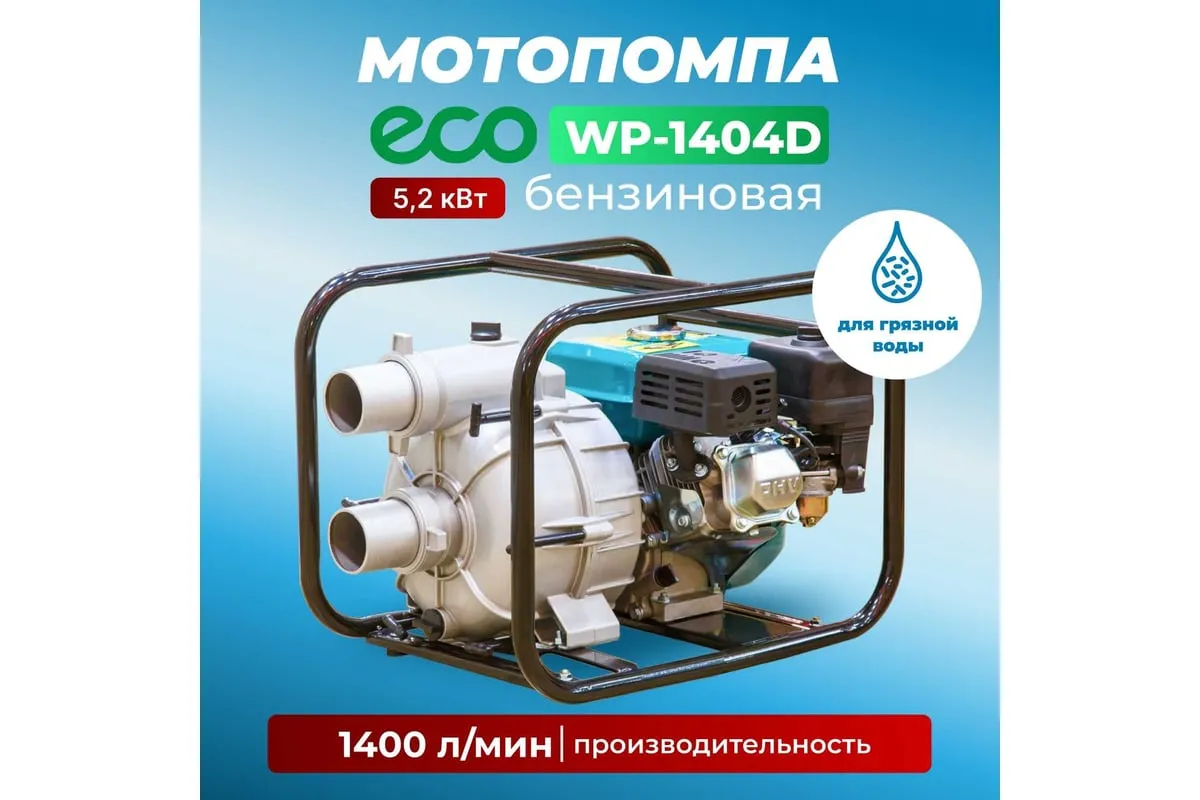 Мотопомпа ECO WP-1404D используется для перекачки и откачивания загрязненной воды.