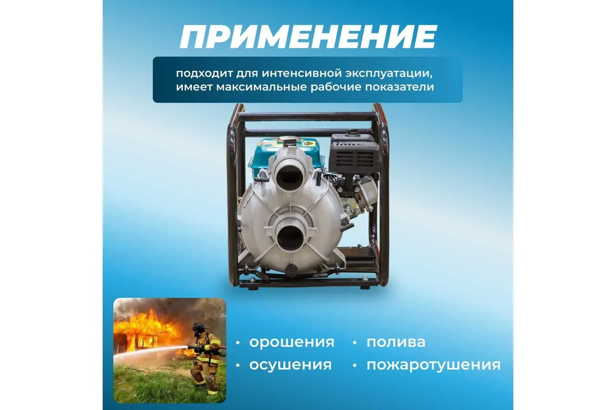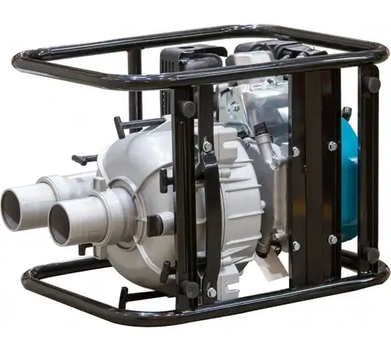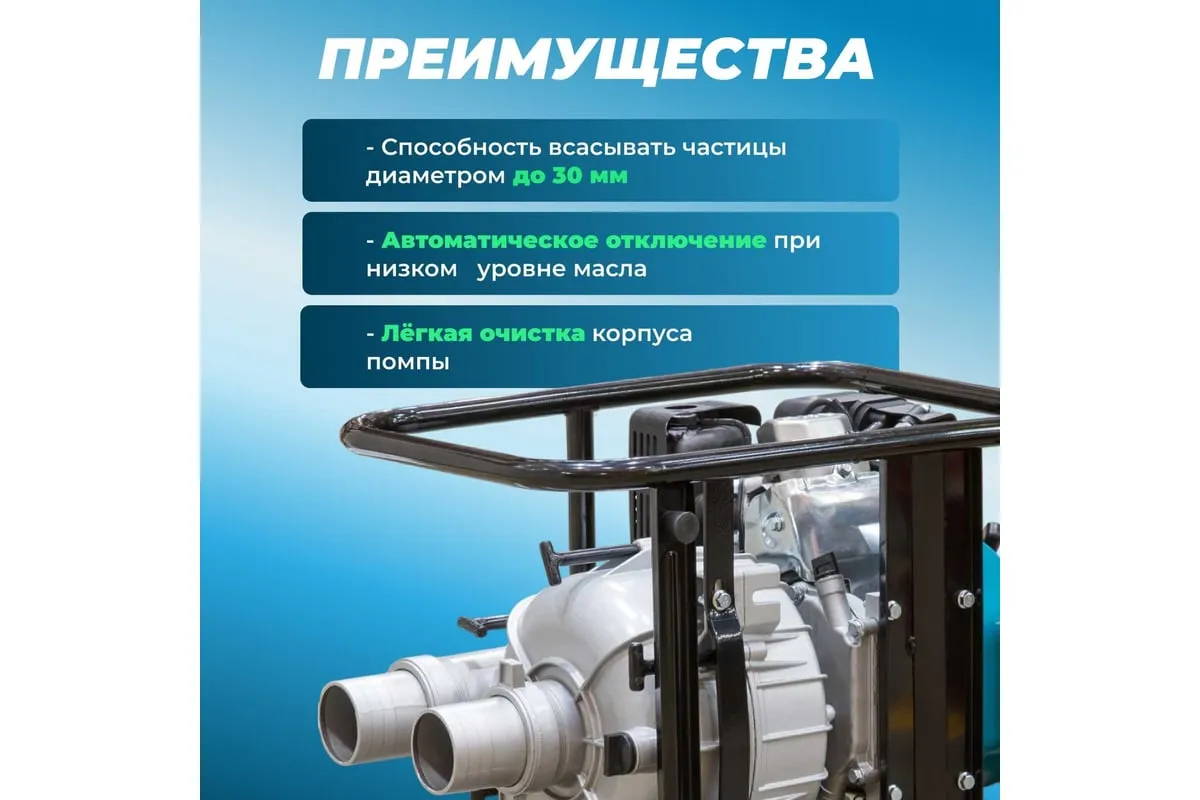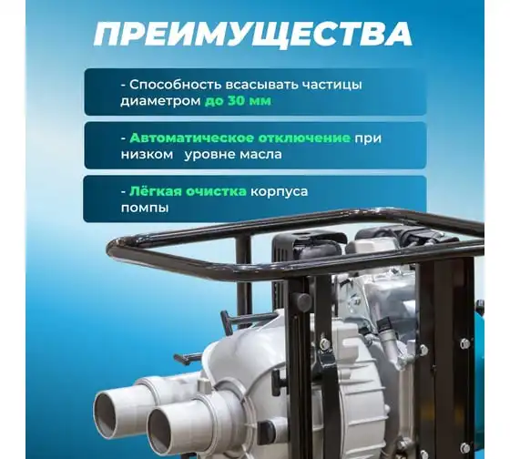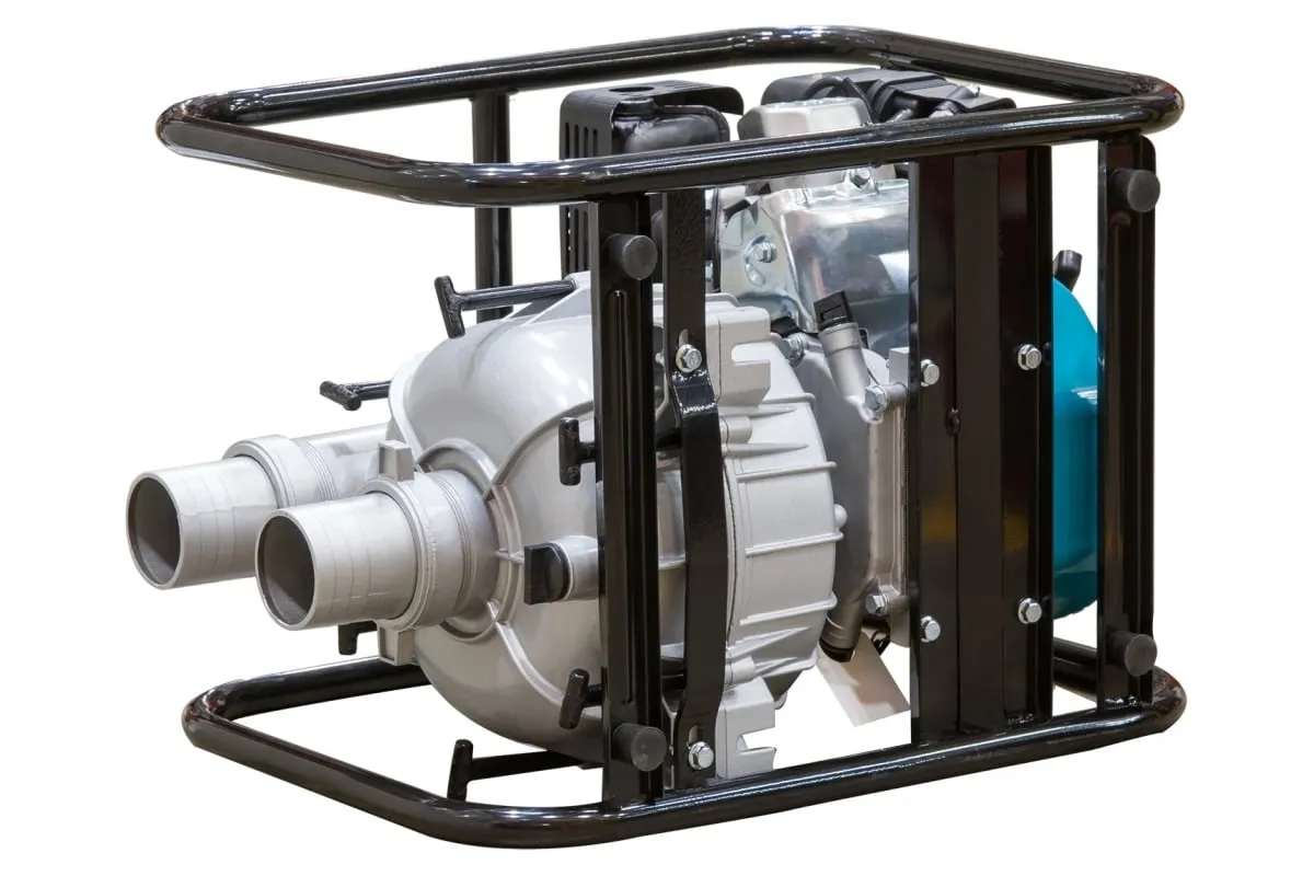 Прочная металлическая рама служит для защиты мотопомпы от повреждений и облегчает её транспортировку.