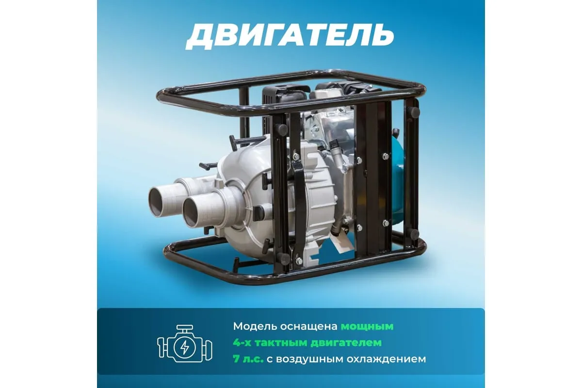 Высокая производительность. Оснащена 4-х тактным двигателем, который обеспечивает производительность до 1400 л/мин.