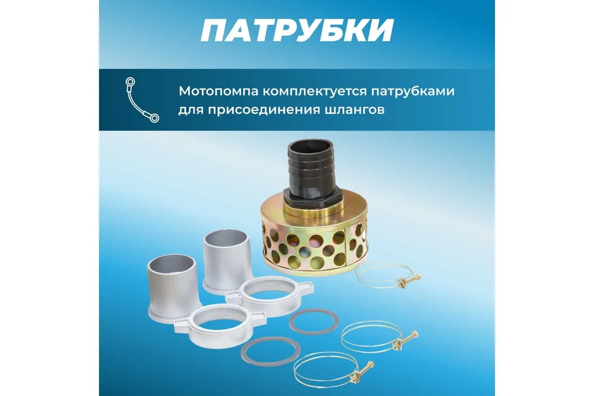 Мотопомпа комплектуется патрубками для присоединения шлангов.
