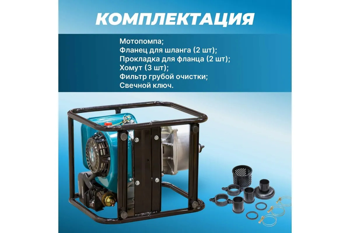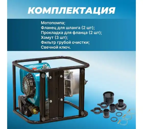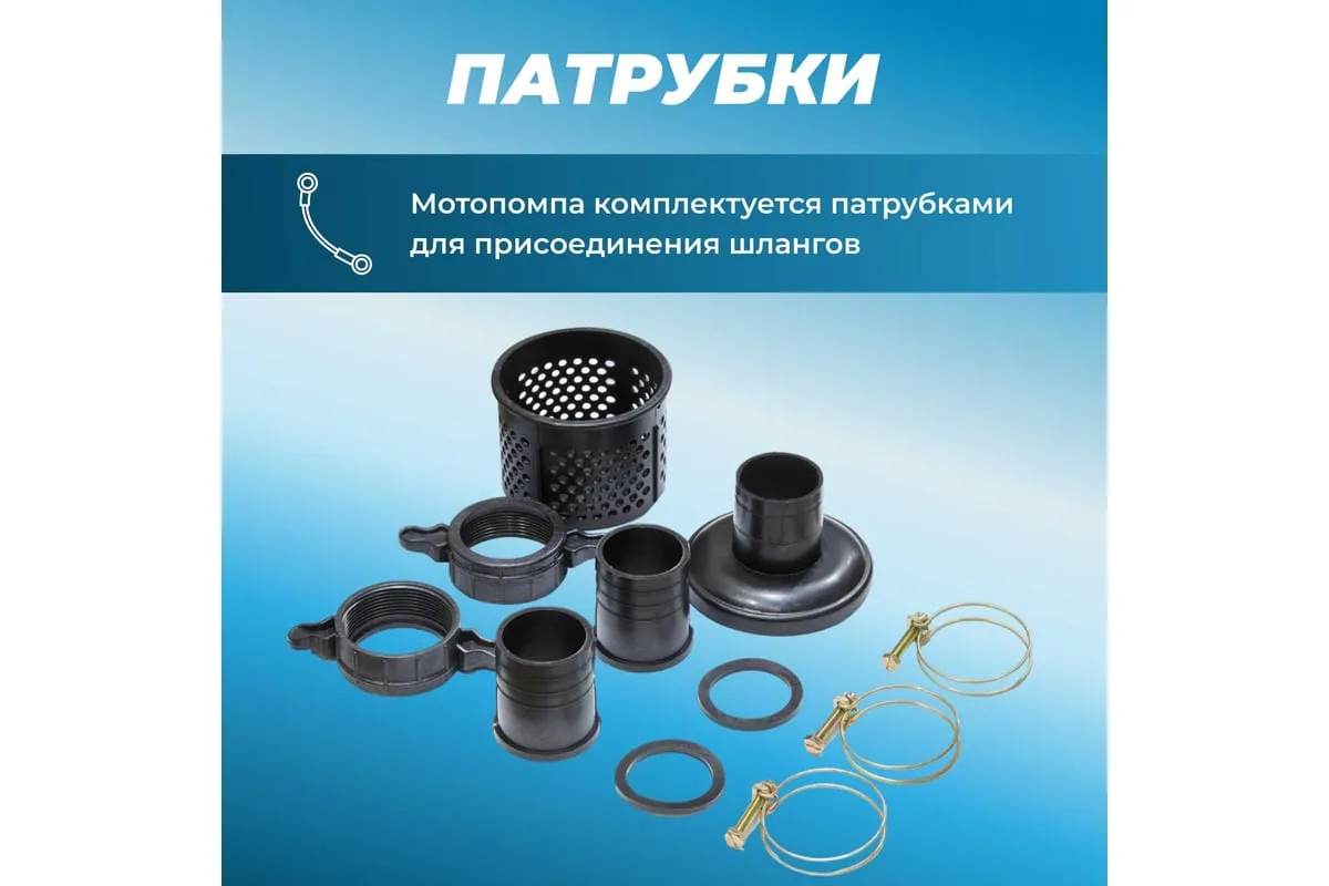 Мотопомпа комплектуется патрубками для присоединения шлангов.