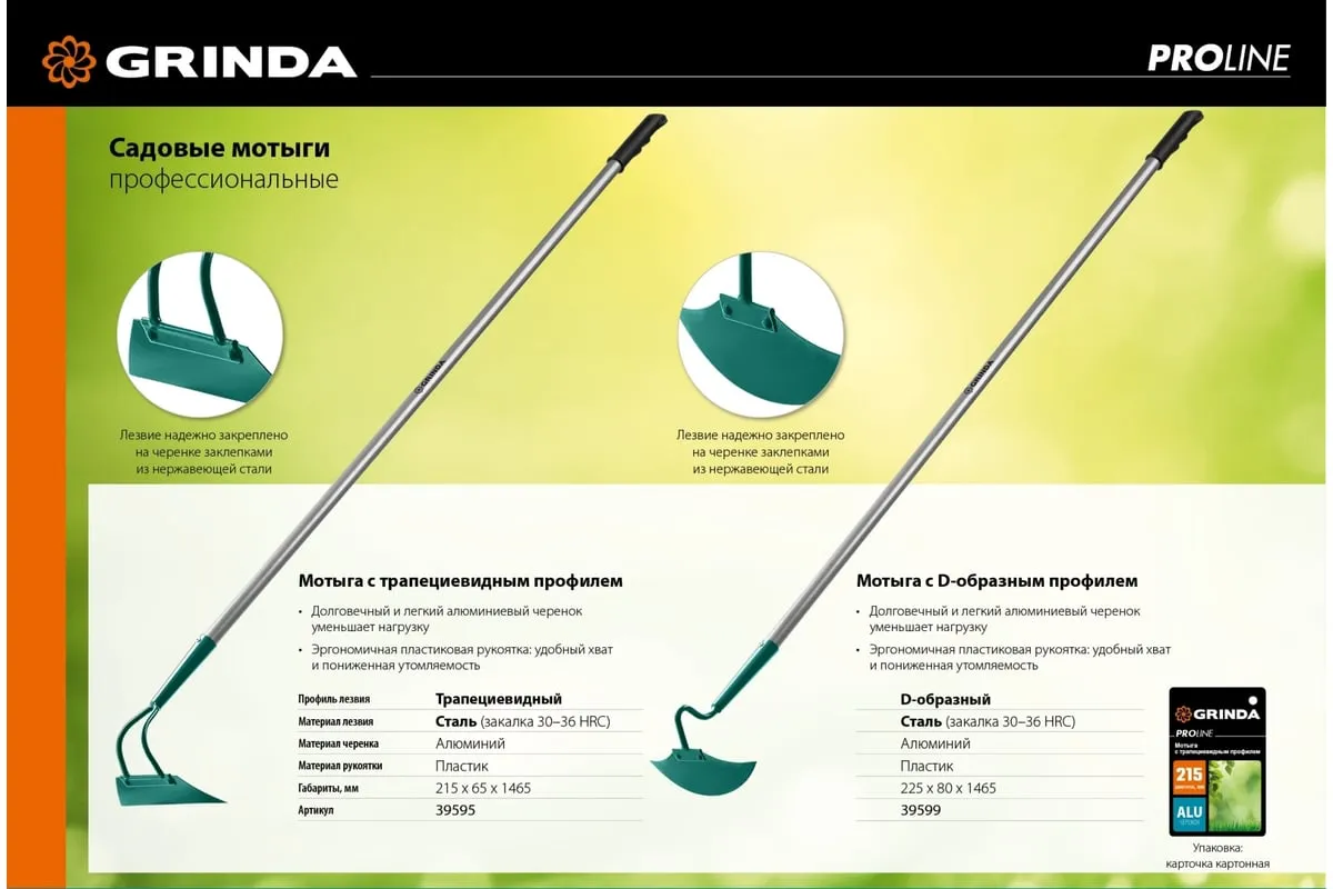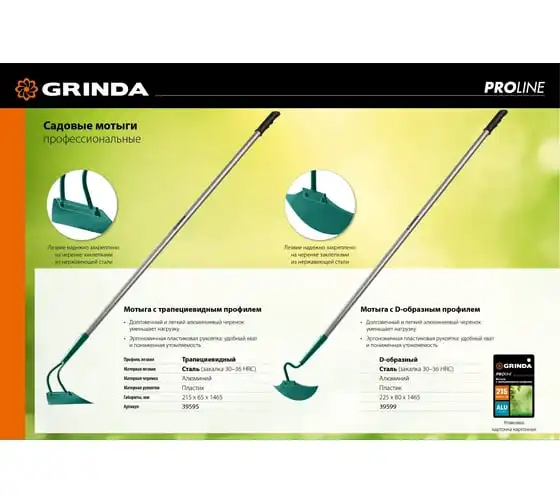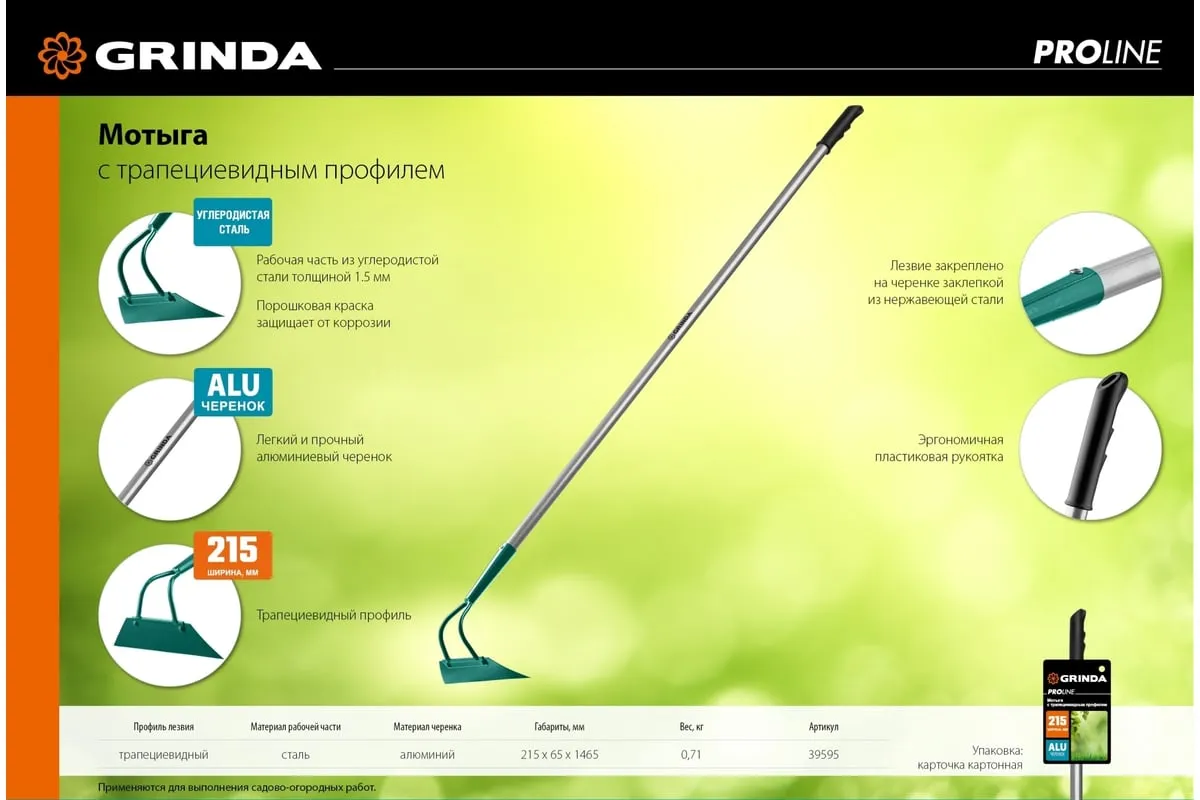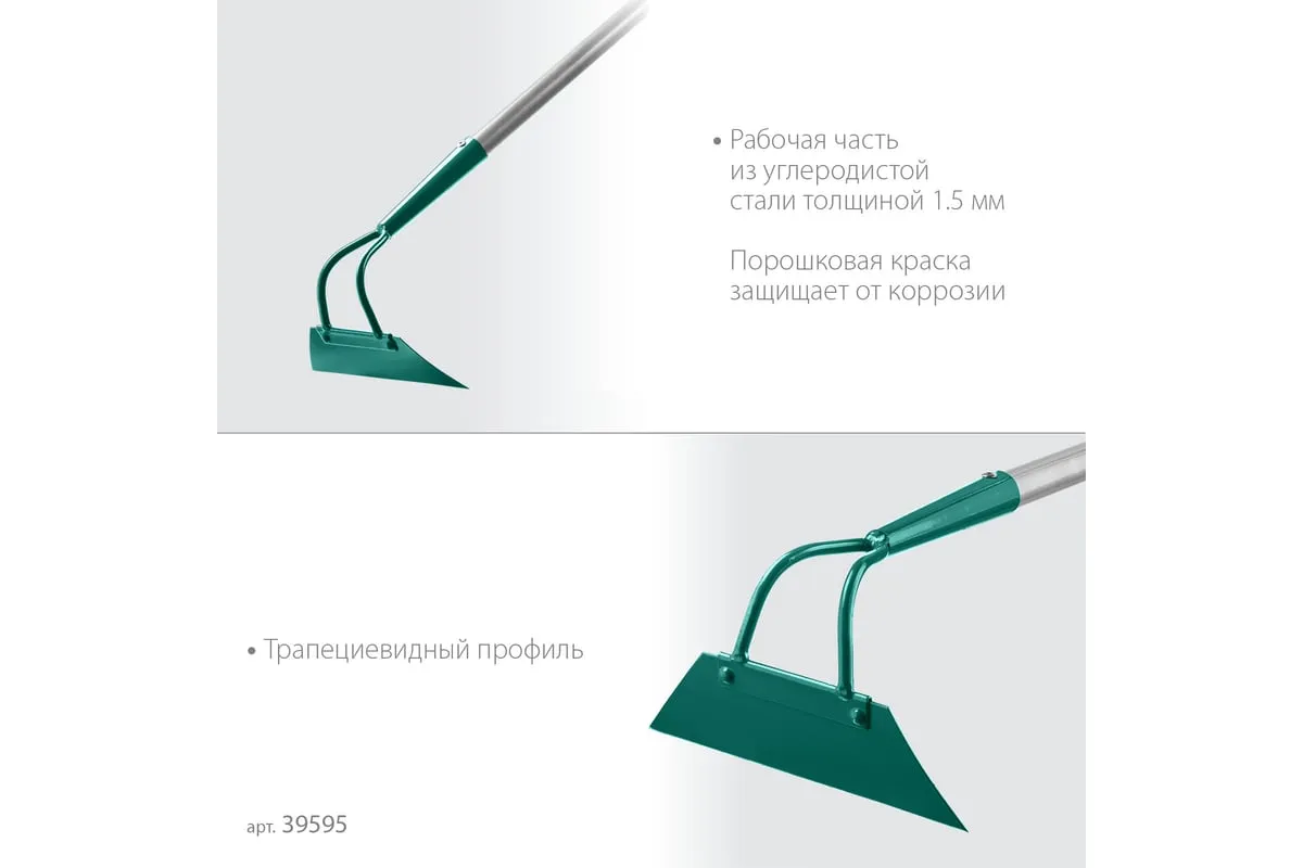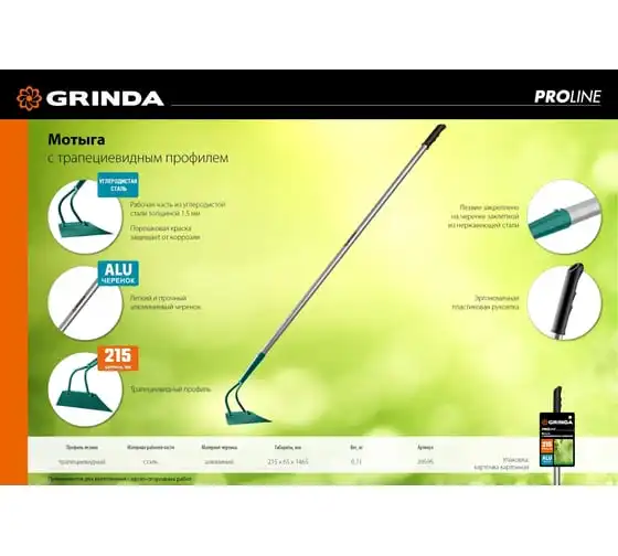 Мотыга с трапецевидным профилем GRINDA PROLine 215 мм 39595 предназначена для рыхления почвы и прополки гряд на садово-огородных участках. Мотыга изготовлена из стали, для защиты от коррозии поверхность покрыта краской. Мотыга укомплектована алюминиевым черенком, он отличается небольшим весом и долгим сроком службы. Для комфортного использования предусмотрена эргономичная накладка.