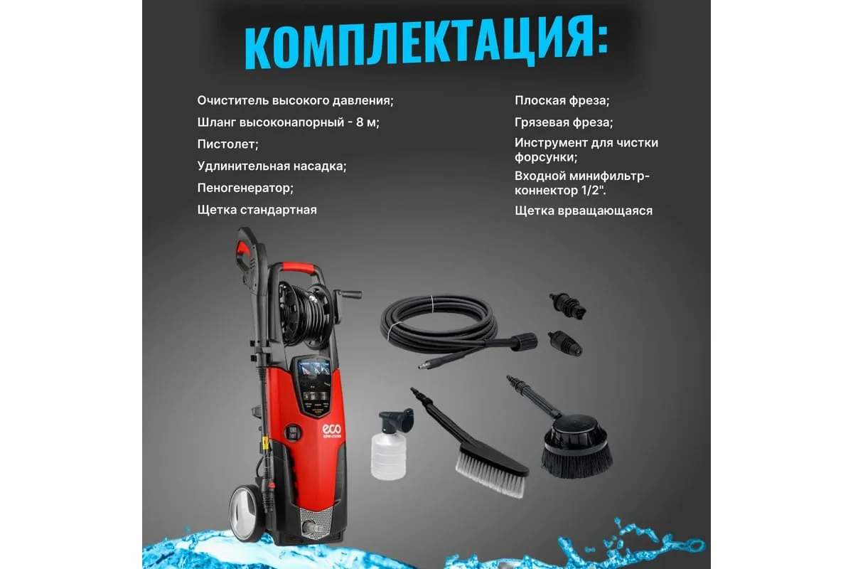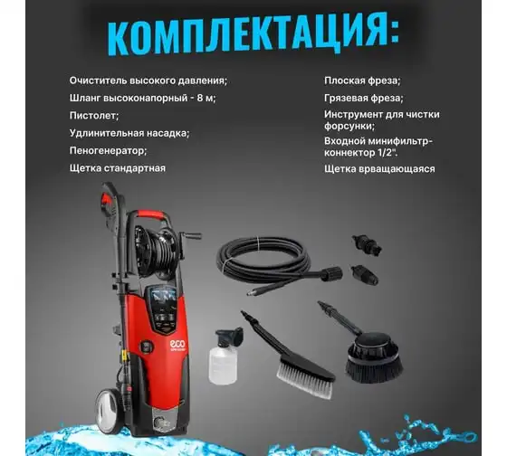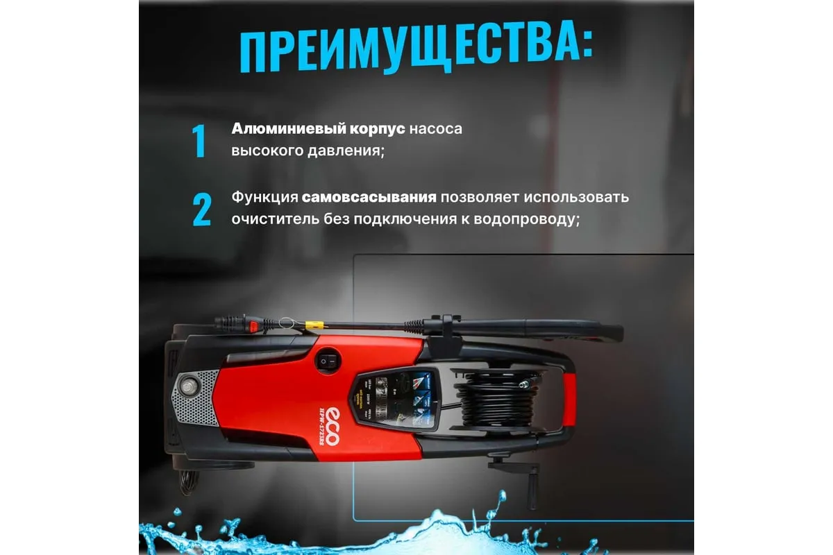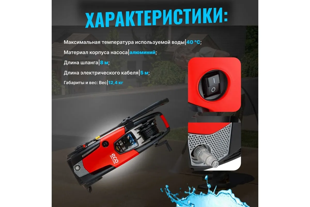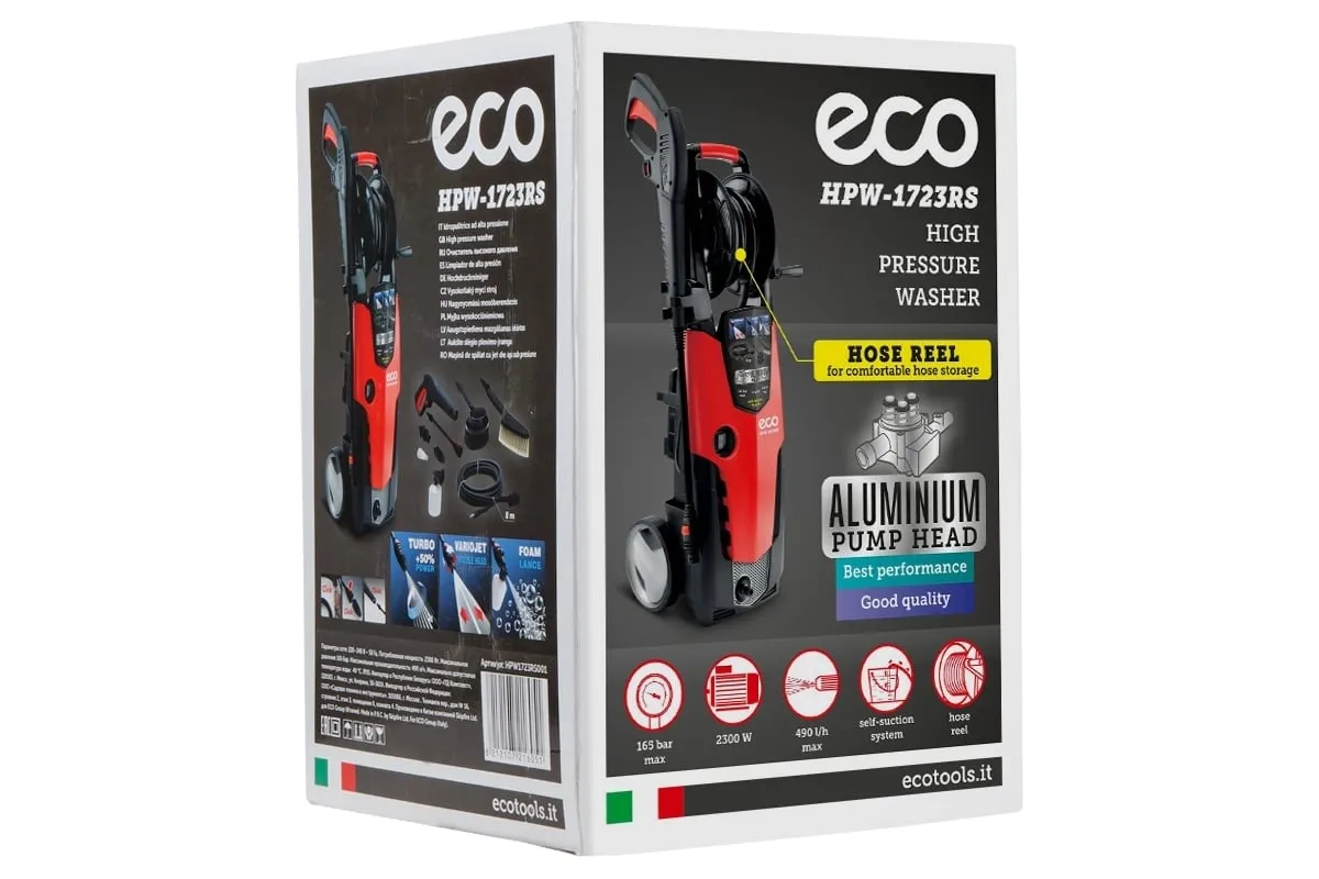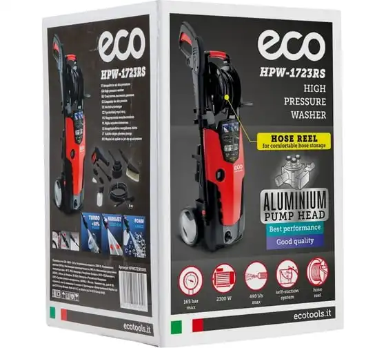 Мойка высокого давления ECO HPW1723RS001 применяется для очистки фасадов зданий, садовых дорожек и внедорожников.