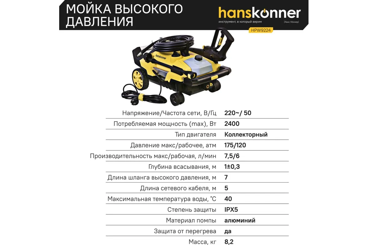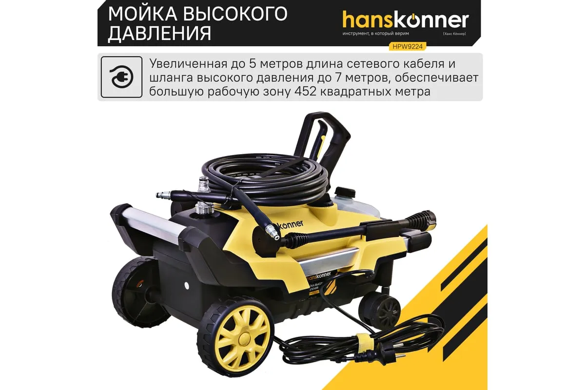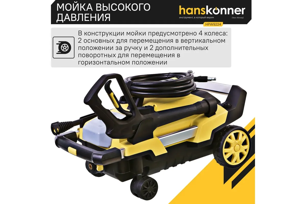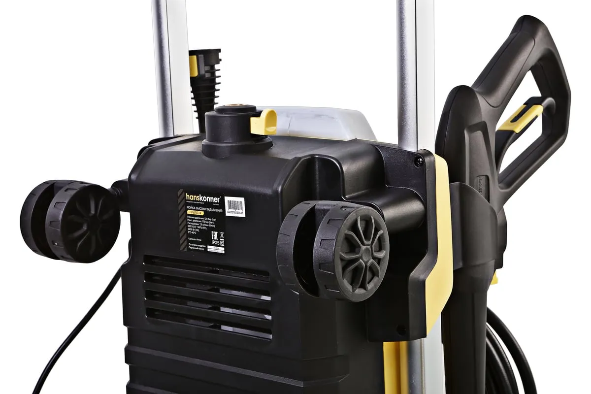 Современная удобная модель для широкого спектра применения на загородных участках. В конструкции мойки предусмотрено 4 колеса: 2 основных для перемещения в вертикальном положении за ручку и 2 дополнительных поворотных для перемещения в горизонтальном положении за шланг в след за пользователем. Увеличенная до 5 метров длина сетевого кабеля и шланга высокого давления до 7 метров, обеспечивает большую рабочую зону 452 квадратных метра. Для работы с моющими средствами мойка оснащена встроенным бачком для подачи эмульсии и внешним пеногенератором с регулировкой густоты пены. В комплекте грязевая фреза TurboNozzle и форсунка веерного типа. Встроенная термозащита и автоматическая система с датчиком мгновенной остановки двигателя TOTAL STOP гарантирует безопасную, энергосберегающую и долговечную работу. Трёх-плунжерная самовсасывающая помпа из легкого алюминиевого сплава обеспечивает давление необходимое для удаления стойких загрязнений ипозволяет использовать различные источники водоснабжения, в том числе и без источника давления. На корпусе мойки предусмотрены крепления для всех аксессуаров.