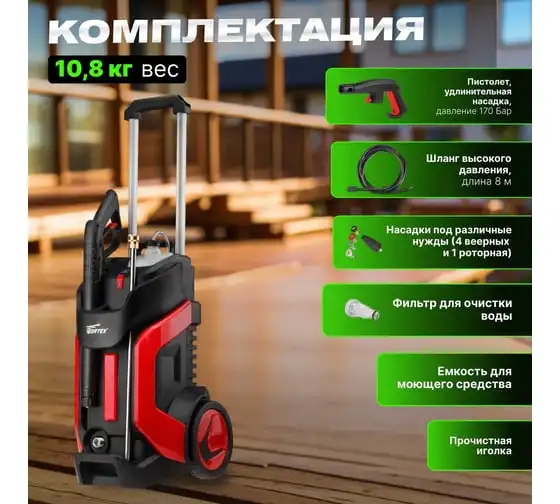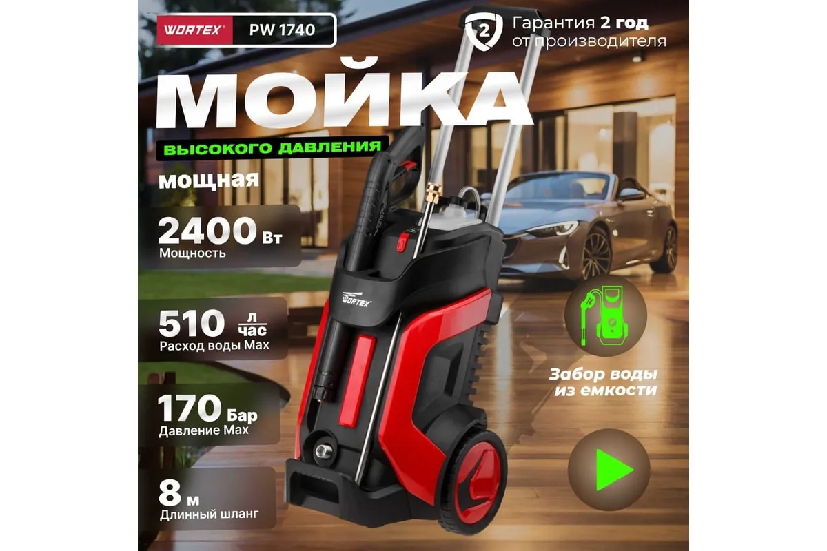 Мойка высокого давления WORTEX PW 1740 PW174000025 благодаря эргономичному дизайну удобна в использовании.