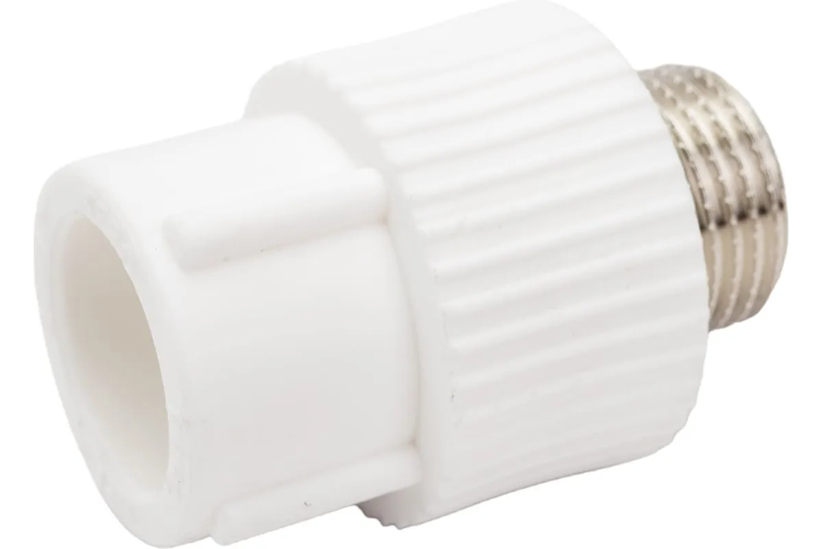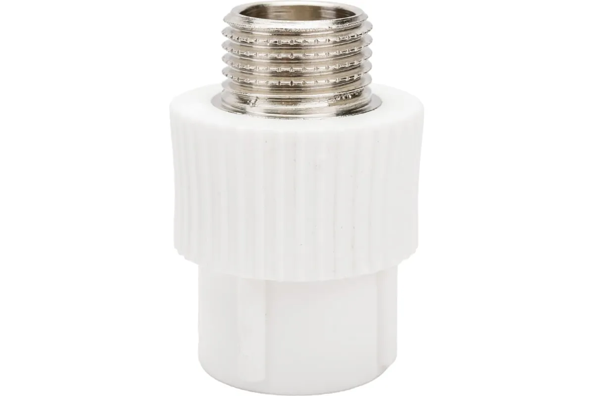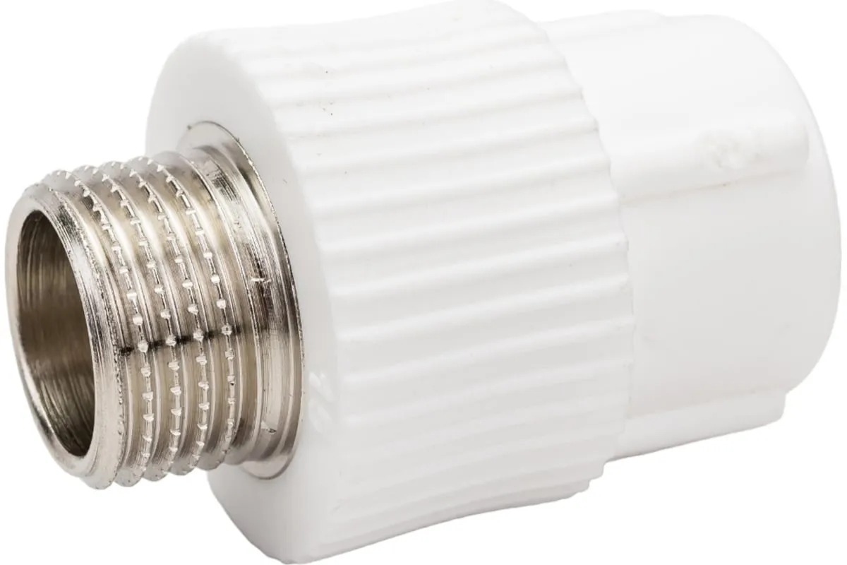 Комбинированные полипропиленовые фитинги имеют интегрированную латунную резьбовую вставку (закладную Латунь марки CW617N) с никелевым покрытием и служат для перехода на резьбовое трубное соединение. Предусмотрены вспомогательные метки, нанесенные на поверхность фитинга, позволяющие легко определить длину сварочного пояска раструба фитинга и продольная метка контролирует соосность свариваемых деталей все это облегчает процесс качественной сварки.