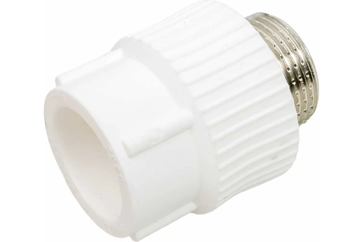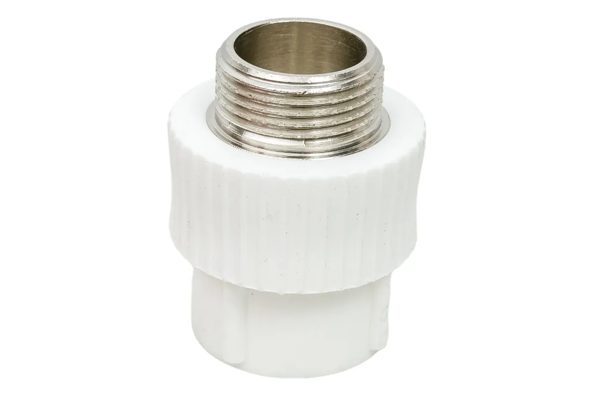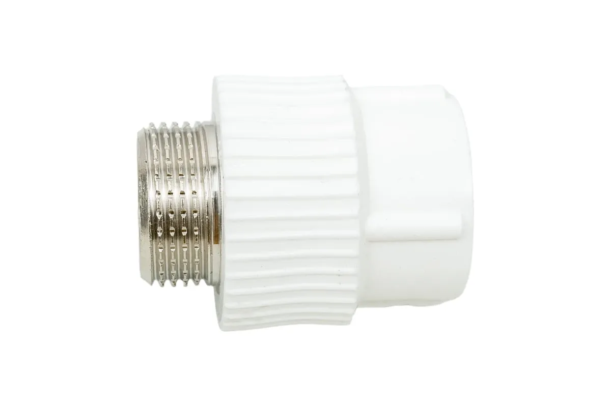 Комбинированные полипропиленовые фитинги имеют интегрированную латунную резьбовую вставку (закладную Латунь марки CW617N) с никелевым покрытием и служат для перехода на резьбовое трубное соединение. Предусмотрены вспомогательные метки, нанесенные на поверхность фитинга, позволяющие легко определить длину сварочного пояска раструба фитинга и продольная метка контролирует соосность свариваемых деталей все это облегчает процесс качественной сварки.