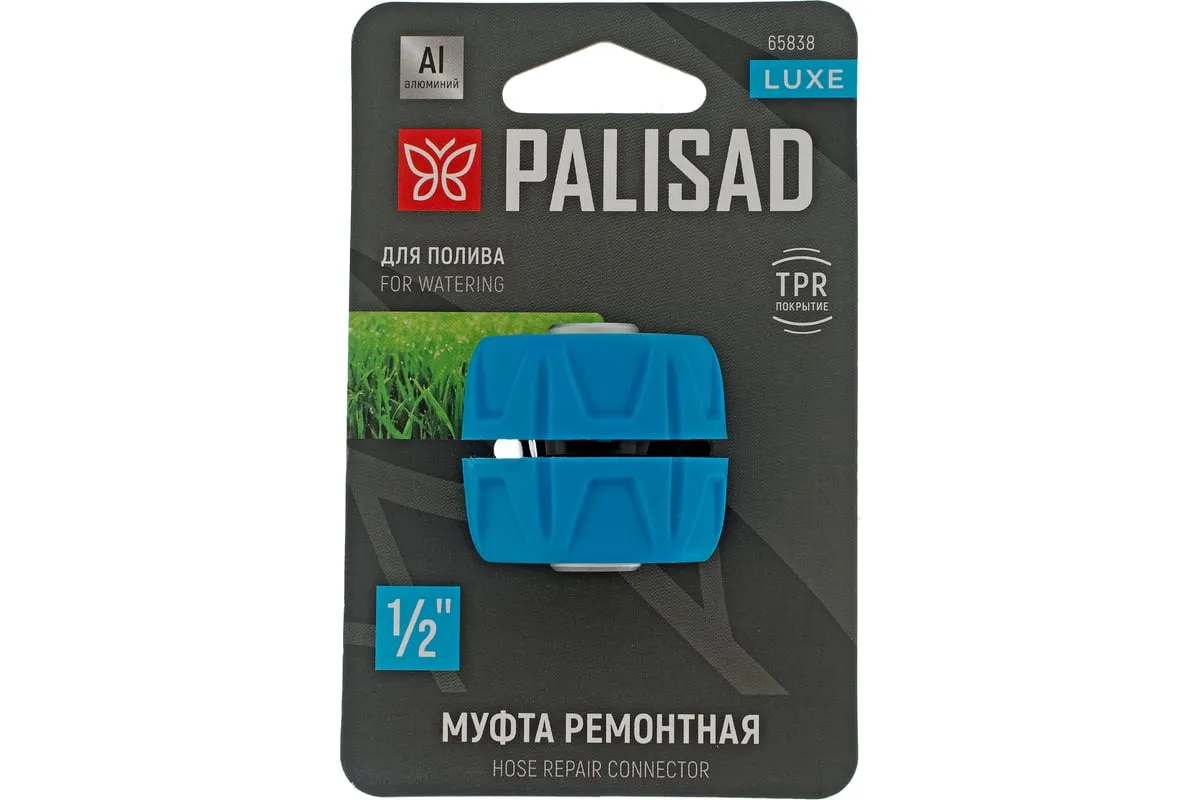 Муфта ремонтная алюминиевая Palisad LUXE 65838 позволяет соединить два шланга диаметром 1/2". С ее помощью можно удлинить поливочную линию или отремонтировать поврежденный участок шланга.