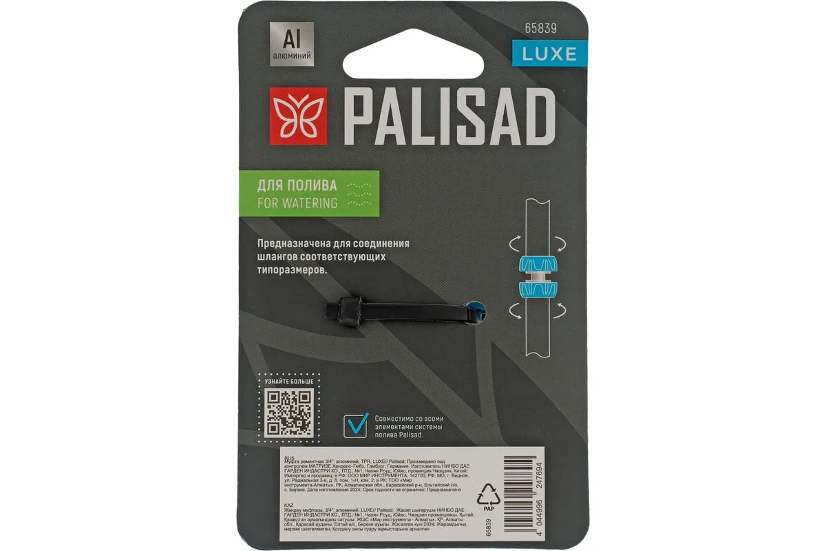 Муфта ремонтная алюминиевая Palisad LUXE 65839 позволяет соединить два шланга диаметром 3/4". С ее помощью можно удлинить поливочную линию или отремонтировать поврежденный участок шланга.