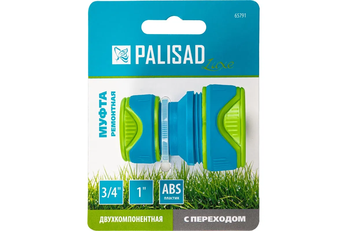 Ремонтная муфта Palisad Luxe 65791 в двухкомпонентном корпусе, с переходом 3/4"-1", позволяет создать оросительную систему из шлангов разного размера. С помощью муфты можно удлинить линию для полива больших территорий.