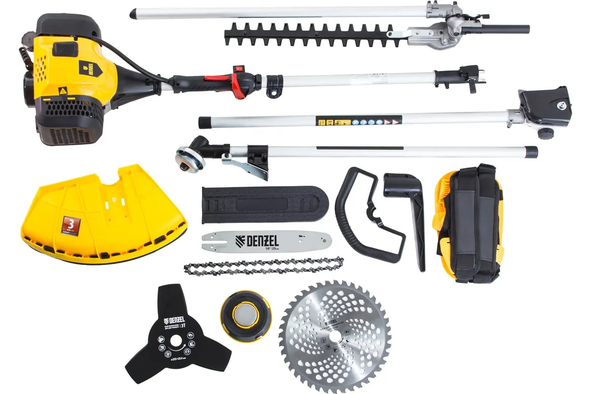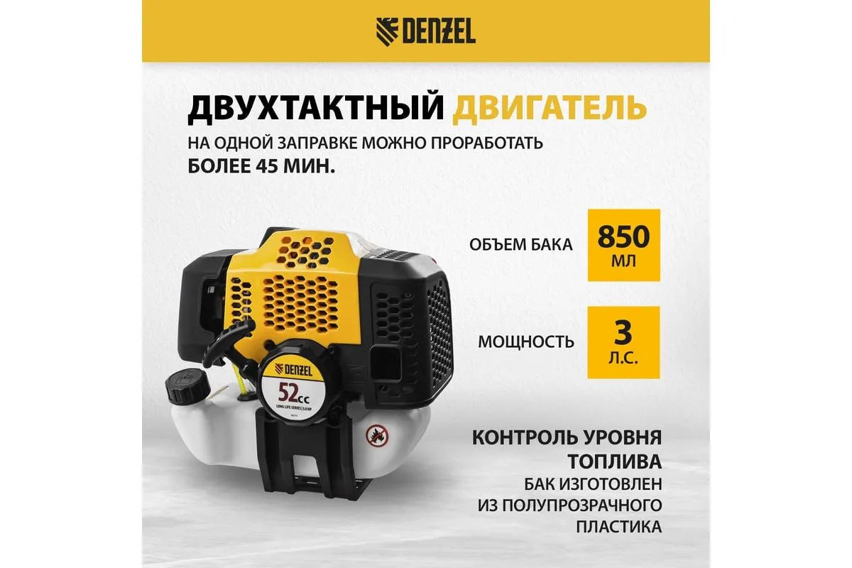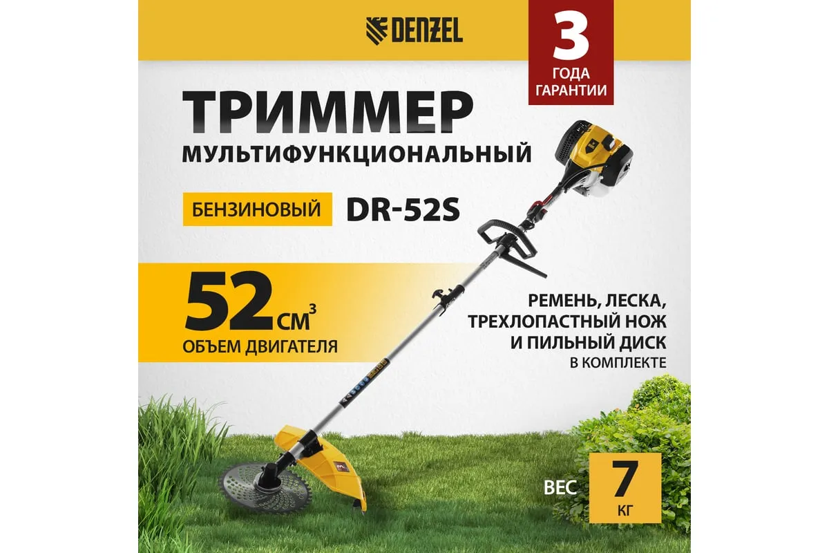 Мультифункциональный бензиновый триммер Denzel DGT-52S-MAX 96279 – незаменимый помощник на садовом участке. Предназначен для скашивания травы и молодого кустарника, а также для ухода за садовыми деревьями и декоративными кустарниками.