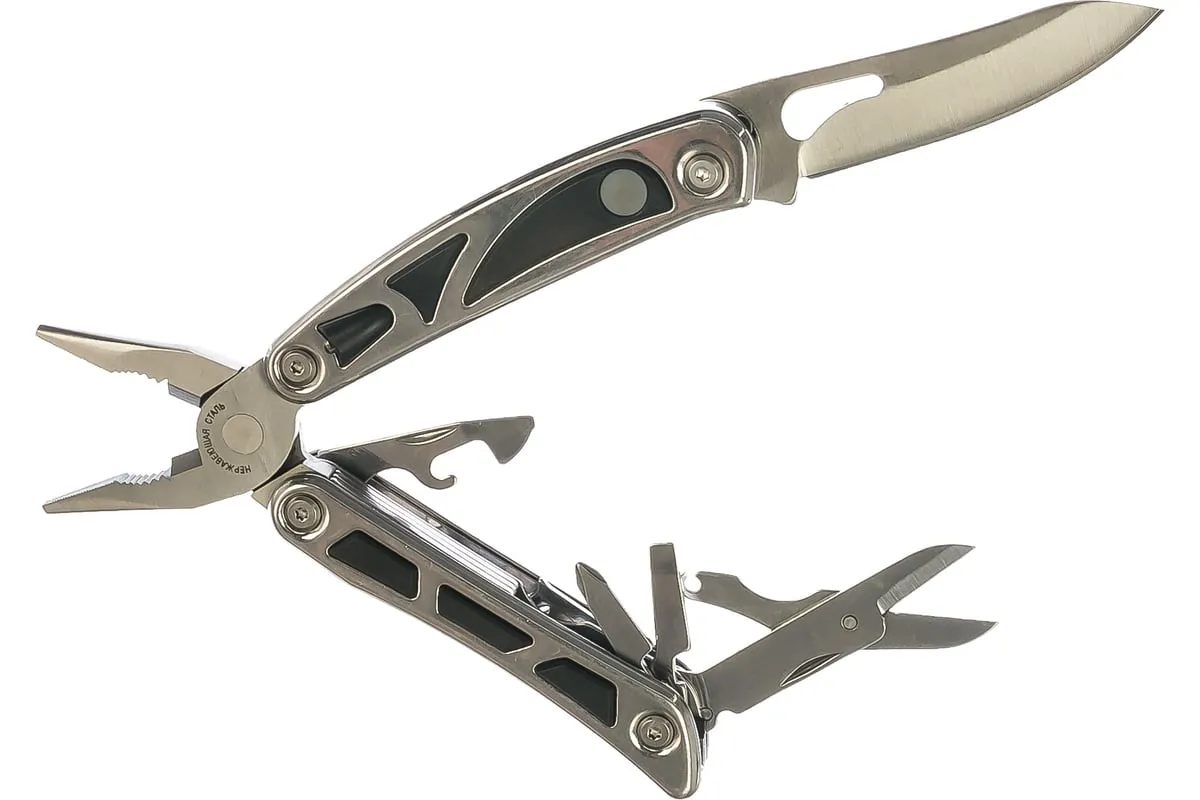 Многофункциональный инструмент ЗУБР ПРЕМИУМ 47770 состоит из одиннадцати предметов, что делает его незаменимым на охоте, рыбалке, в походе и пр. Длина ножа увеличена за счет особенностей конструкции, что расширяет возможности применения инструмента. В конструкции предусмотрены специальные фонари для выполнения работ в местах с недостаточным освещением.
