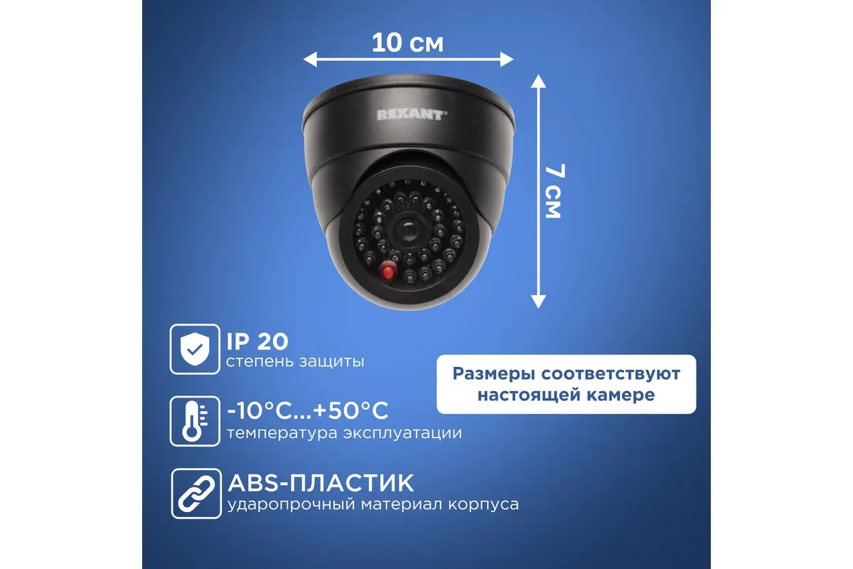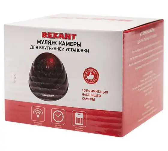 Муляжвнутреннейкамеры видеонаблюденияс вращающимся объективом REXANT является экономичным и реалистичным решением защиты имущества, если нет возможности установить настоящую систему видеонаблюдения. Также он может быть дополнением к существующей системе видеонаблюдения для дополнительного психологического воздействия на потенциальных нарушителей.