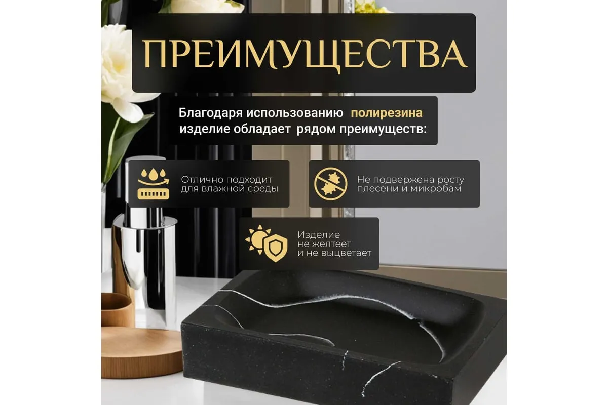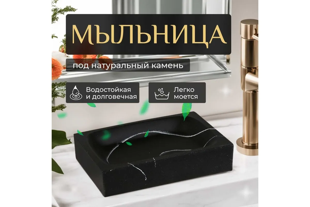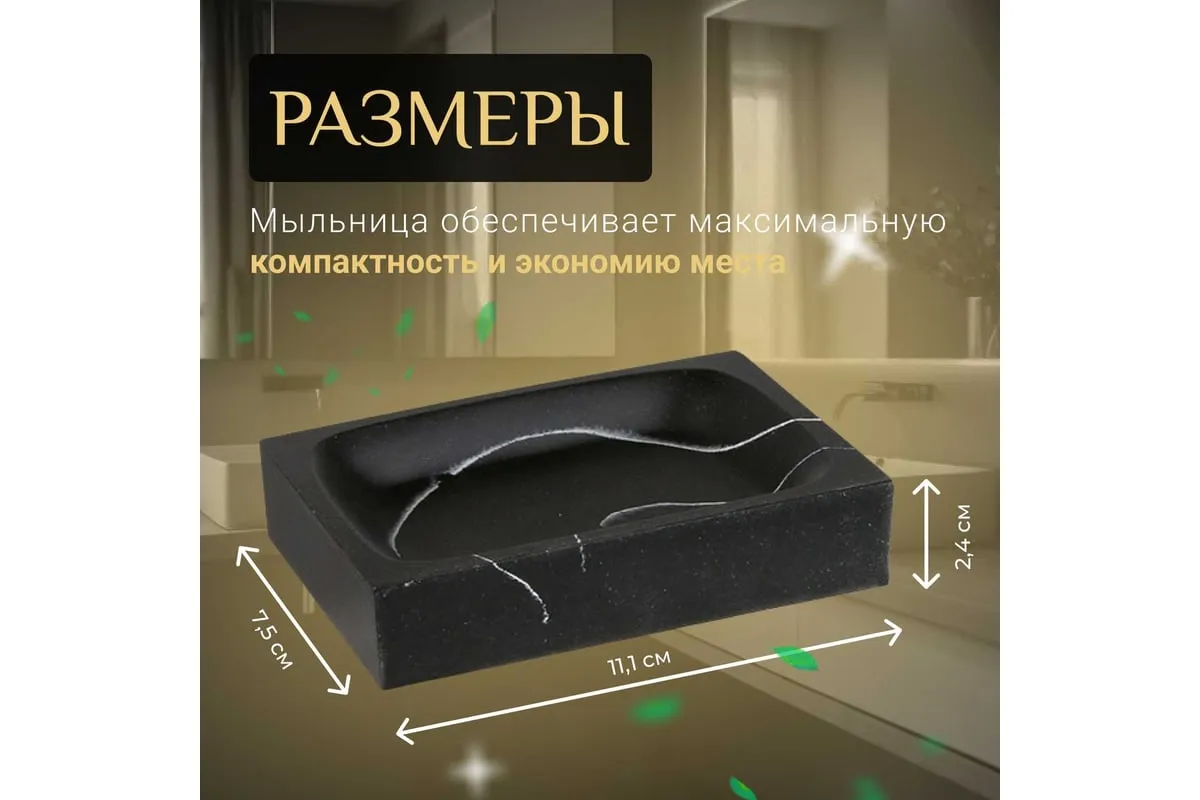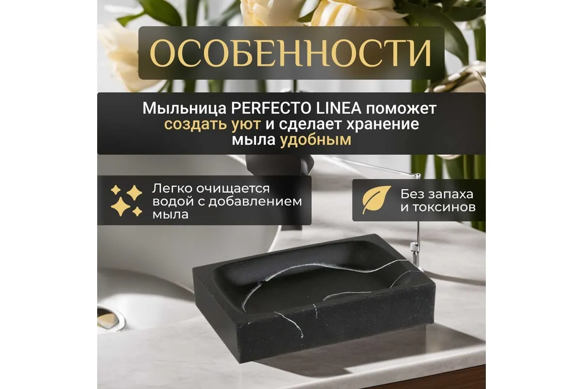 Мыльница LINEA Marble PERFECTO 35-000014 необычного дизайна, создана с помощью композитного материала: полирезина под натуральный камень. Благодаря такой структуре изделие имеет низкую теплопроводность, приятное на ощупь, а также устойчиво к влаге и повышенным температурам.