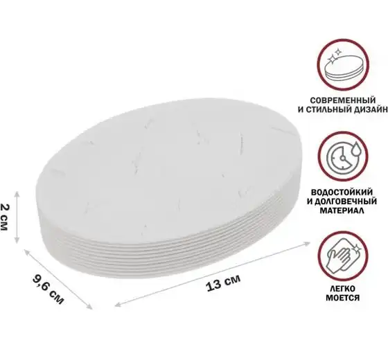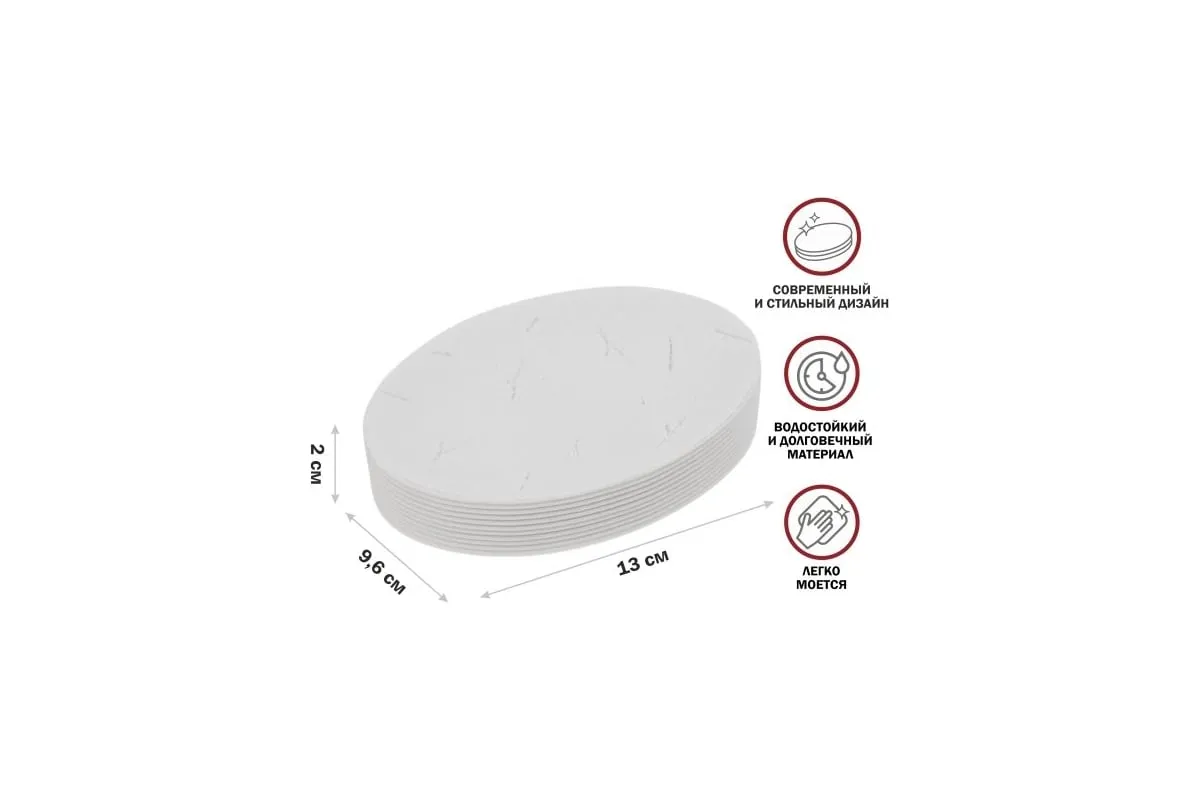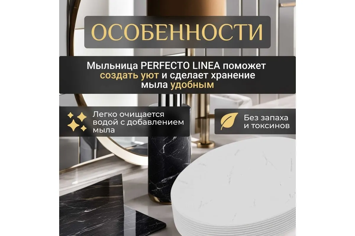 Мыльница LINEA Whiteston PERFECTO 35-105034 необычного дизайна, создана с помощью композитного материала: полирезина под натуральный камень. Благодаря такой структуре изделие имеет низкую теплопроводность, приятное на ощупь, а также устойчиво к влаге и повышенным температурам.