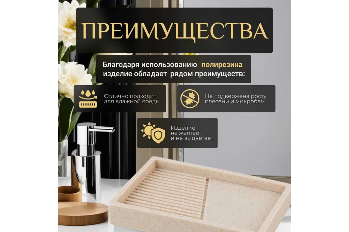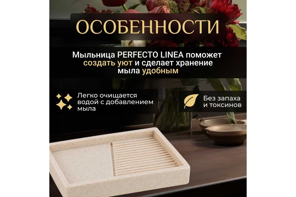 Мыльница PERFECTO LINEA Element бежевая 35-618401 обладает необычным дизайном, созданным с помощью композитного материала: полирезина под натуральный камень. Благодаря такой структуре изделие имеет низкую теплопроводность, приятное на ощупь, а также устойчиво к влаге и повышенным температурам.