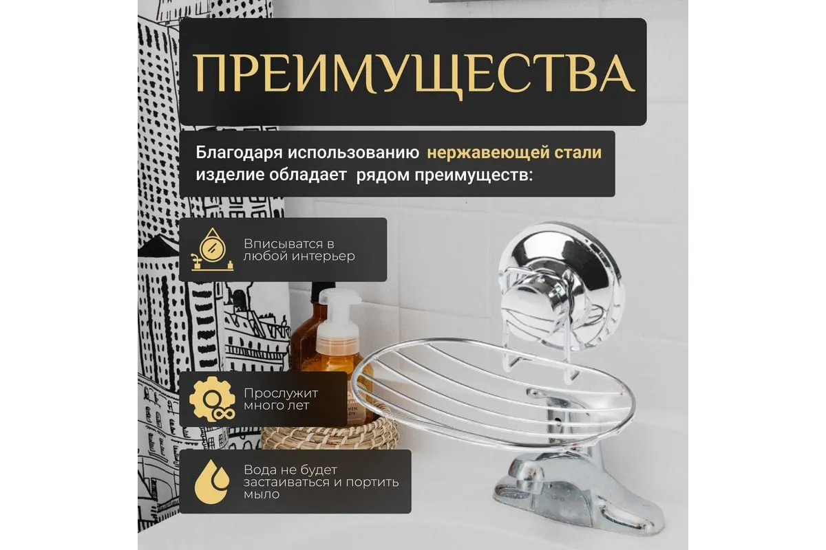 Мыльница PERFECTO LINEA Fix Lock 35-387480 быстро и легко устанавливается на любой воздухонепроницаемой поверхности. В случае необходимости легко перевесить в новое место. Подходит для любой ровной поверхности: плитка, стекло, металл, пластик, зеркало и др. Простая установка, 100% надежность крепления, мощная вакуумная присоска (до 60 бар), нет необходимости сверлить стены. Вакуумный шуруп полностью заменяет по своим свойствам стандартные крепления (дюбель, шуруп), устанавливается без инструментов. Хромированное покрытие обладает высокой прочностью и устойчивостью к коррозии и влажности. Вакуумная винтовая система удерживает до 18 кг.