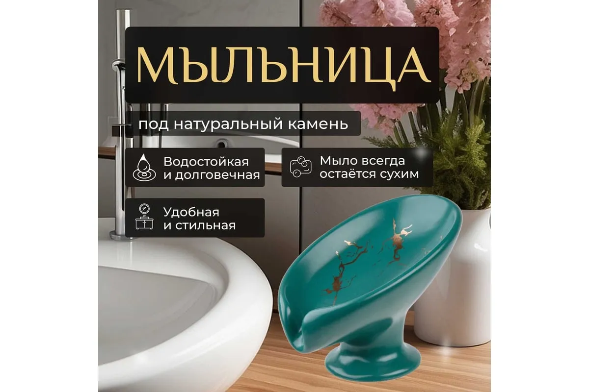 Мыльница зеленая PERFECTO LINEA Elegance 35-113890 выполнена в форме лепестка под наклоном и имеет слив, благодаря чему вода стекает в раковину, а мыло остается сухим и не растворяется. Держатель для мыла также можно использовать как держатель для губок на кухне.