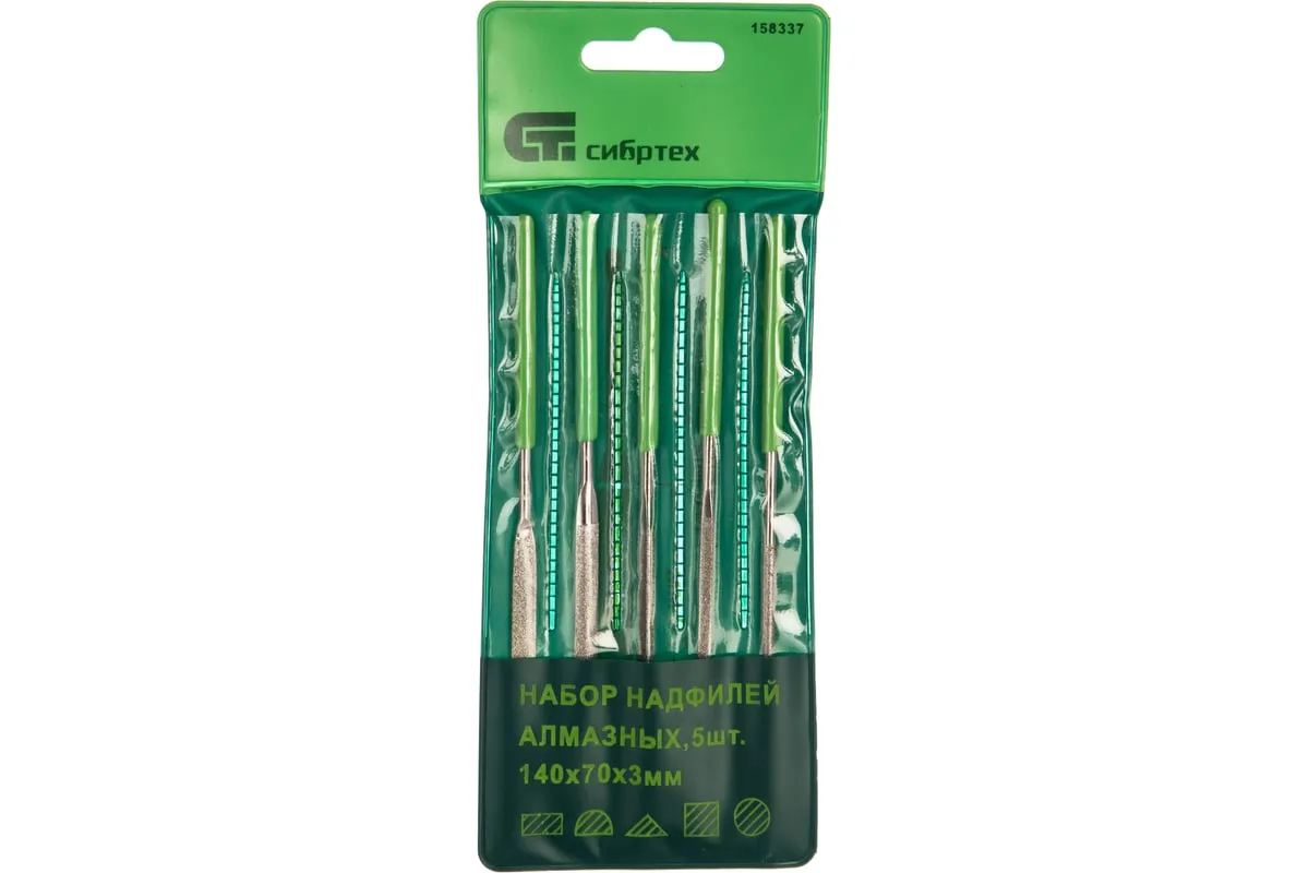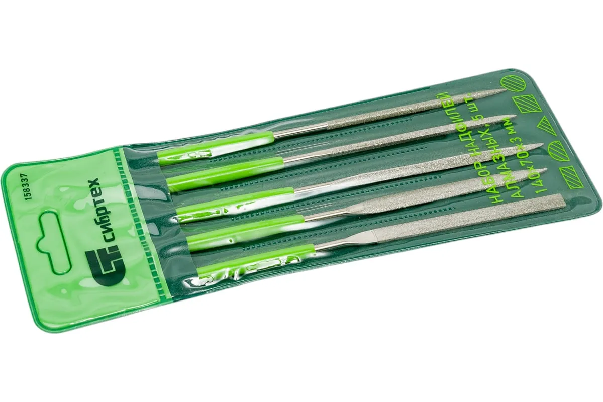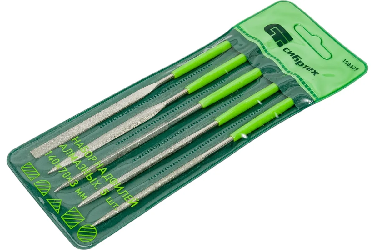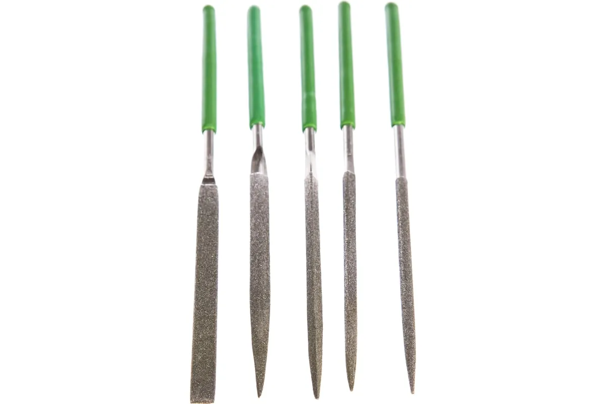 Набор алмазных надфилей предназначен для опиливания твердых поверхностей — стекла, металла, камня, керамики. В комплекте надфили с самыми распространенными профилями, благодаря чему можно обрабатывать плоские детали, пазы, углы, отверстия, сложные грани и рельефные поверхности. Набор будет полезен при проведении слесарных или ремонтно-отделочных работ, пригодится и в быту.