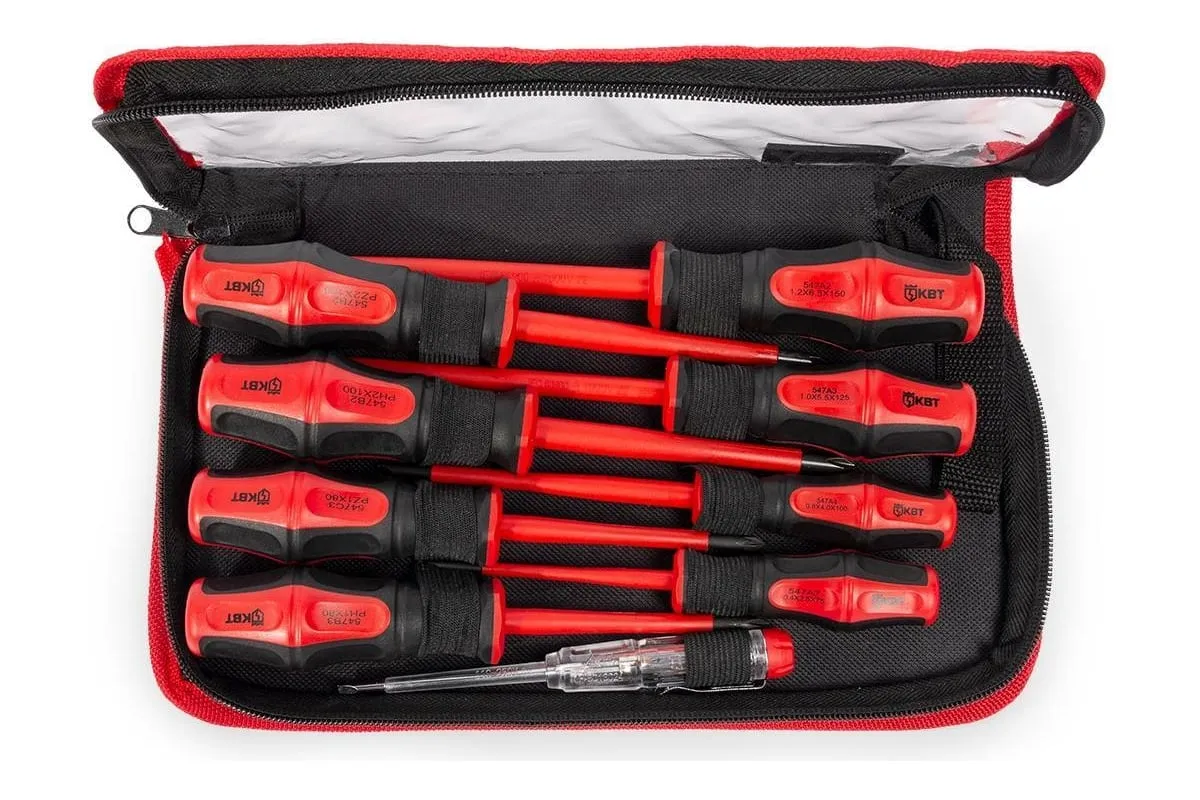 Набор диэлектрических отверток КВТ Профи НИО-09 78620 рассчитан на работу с мелким и крупным крежом с пазом типа Philips и шлицевым. Рукоятки выполнены из двухкомпонентного материала и отлично подходят для работ под напряжением до 1000 В.