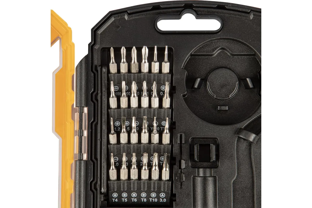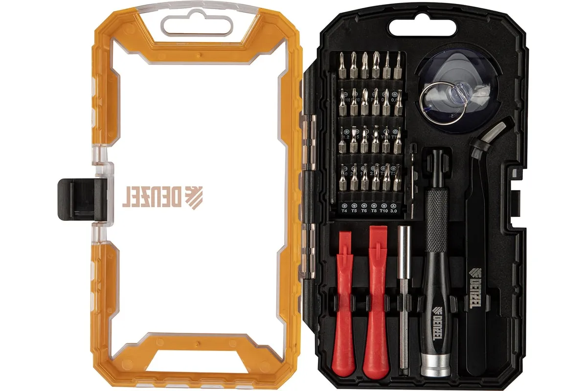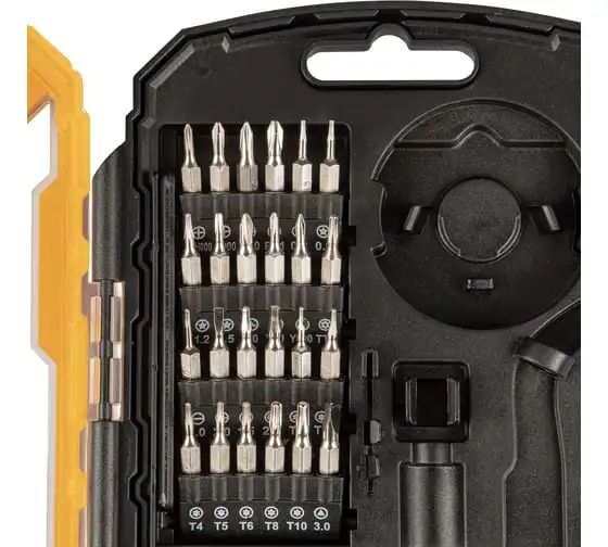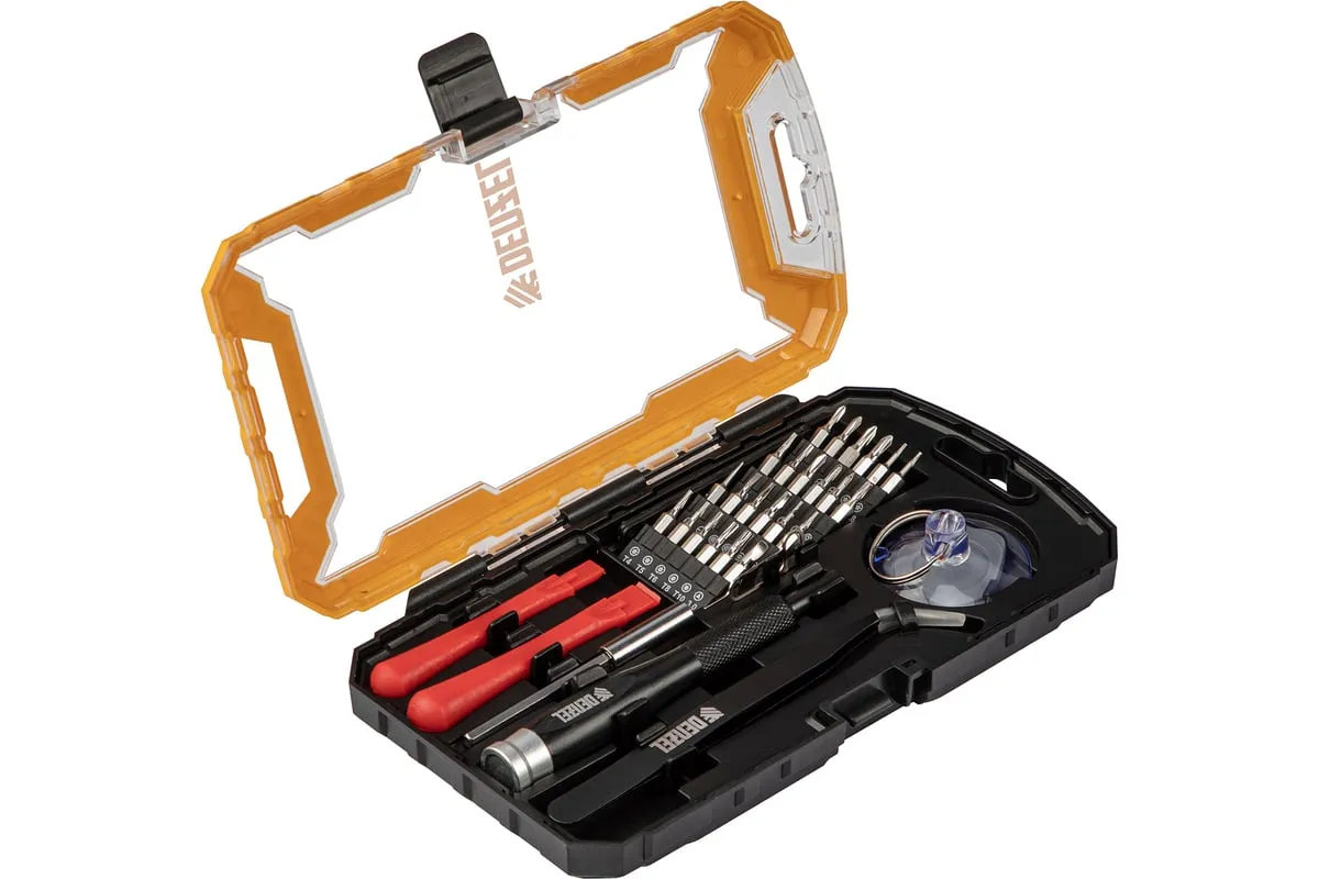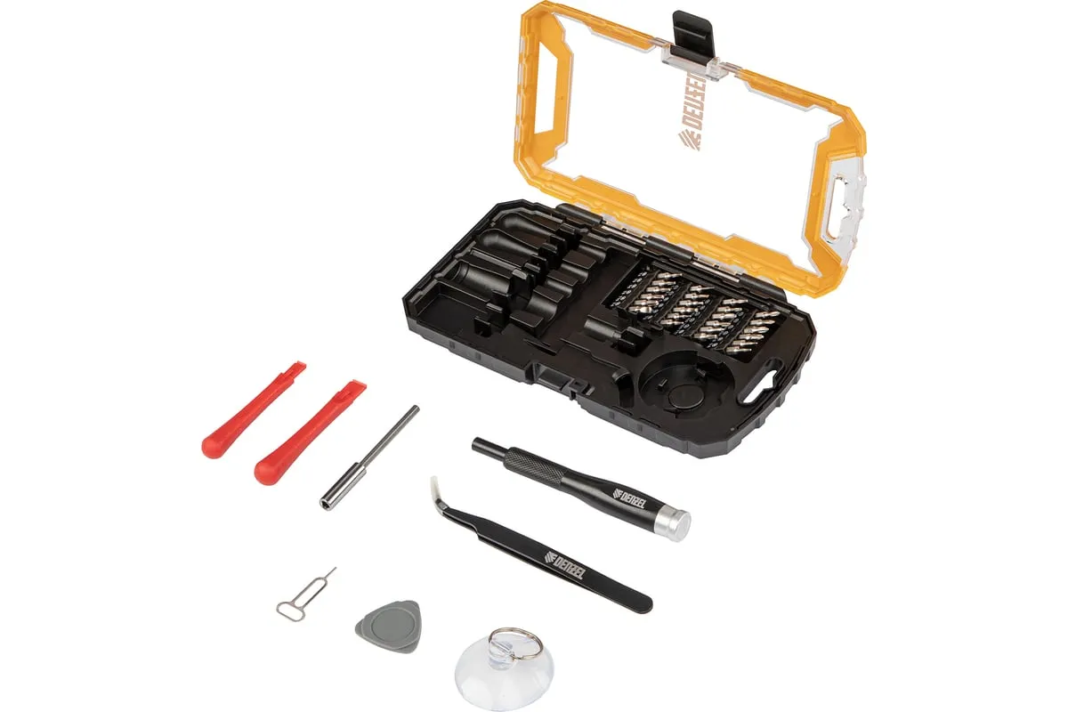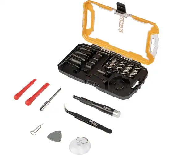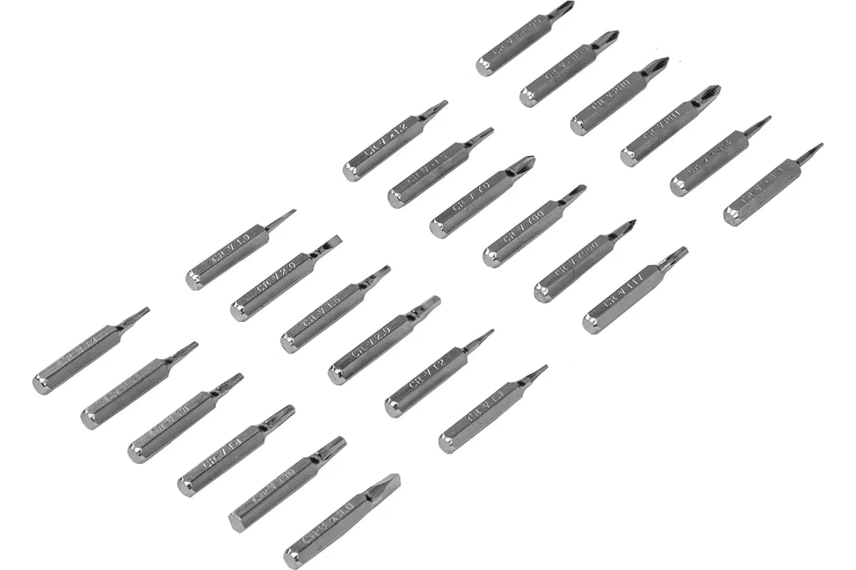 Набор предназначен для ремонта мобильных телефонов. В комплект входит большое количество бит с различными шлицами. Набор поставляется в пластиковом кейсе, что упрощает хранение и транспортировку инструментов.