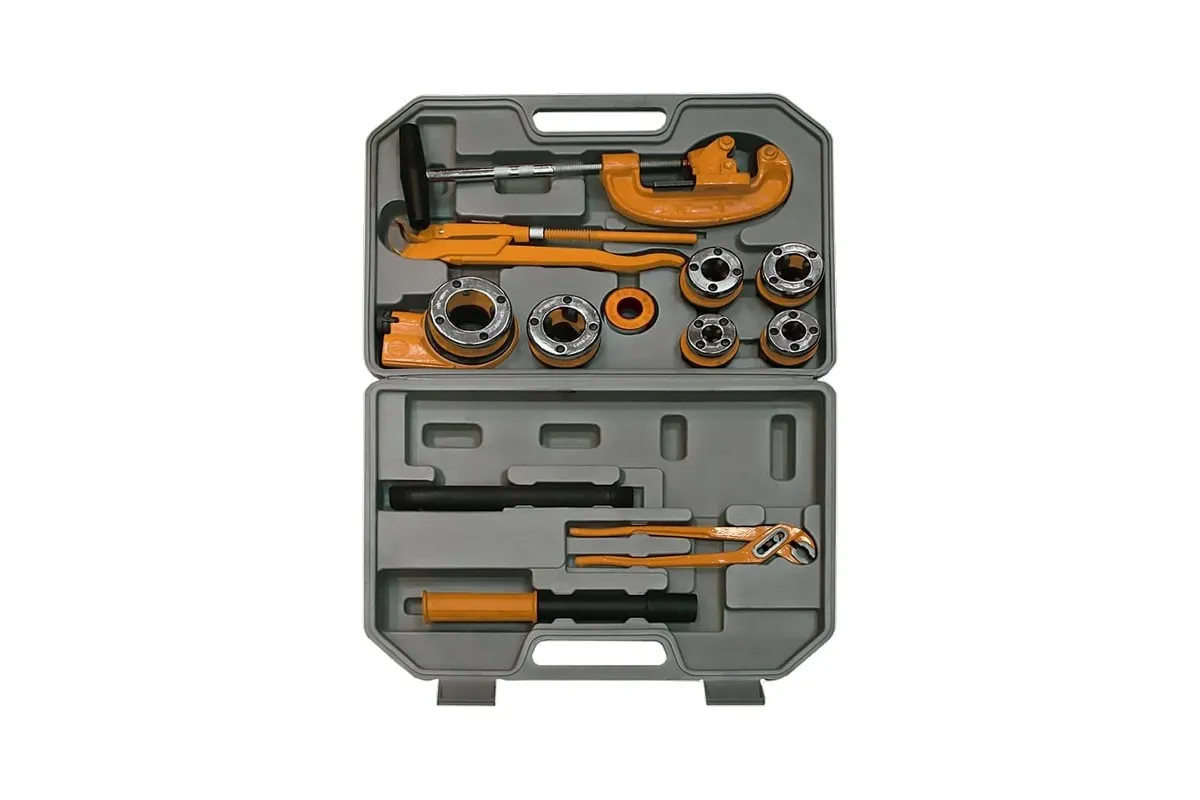 Набор для трубных работ SPARTA 773345 состоит из 13 предметов. Комплектующие данного набора изготовлены из качественной высокоуглеродистой инструментальной стали, что повышает их прочность и значительно продлевает срок службы инструментов.