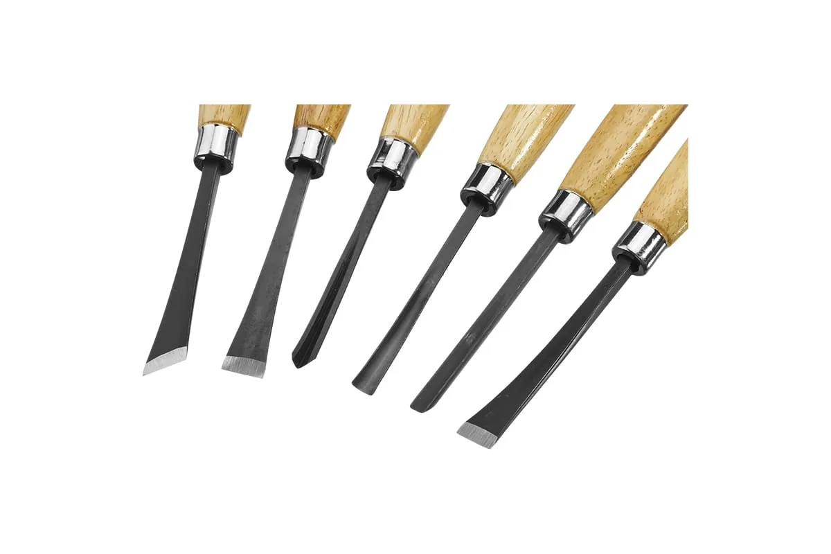 Набор фигурных резцов с деревянной ручкой, 6шт Stayer 1832-H6 подходит для выполнения профессиональных резчицких работ в условиях столярных мастерских или производственных участков. Представленные инструменты имеют разнообразные формы рабочих профилей. Позволяют легко и удобно выполнять фигурную резку и обыкновенную выточку в деталях и заготовках из древесины и пластика.