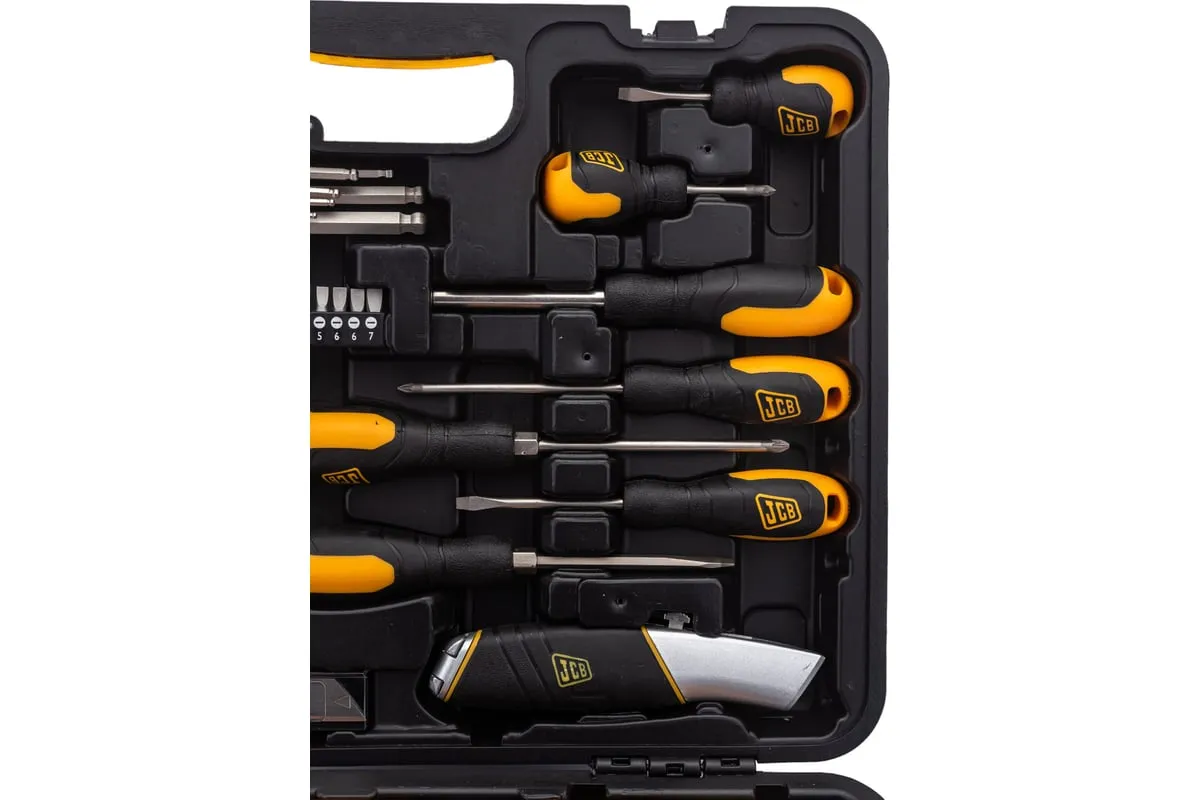 Набор инструментов для ремонтных работ JCB 50 предметов JST002 используется в процессе различных монтажных и ремонтных работ. Инструменты выполнены из качественной и прочной стали, благодаря чему отличаются надежностью и долговечностью. Эргономичные рукоятки служат для комфортной работы. Набор поставляется в удобном кейсе для рационального хранения и транспортировки.