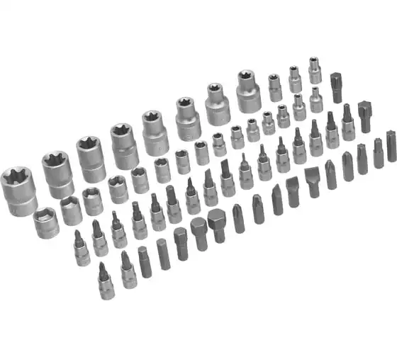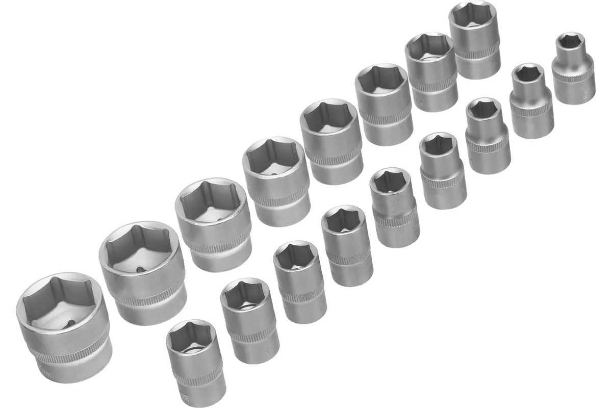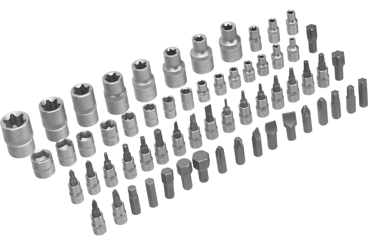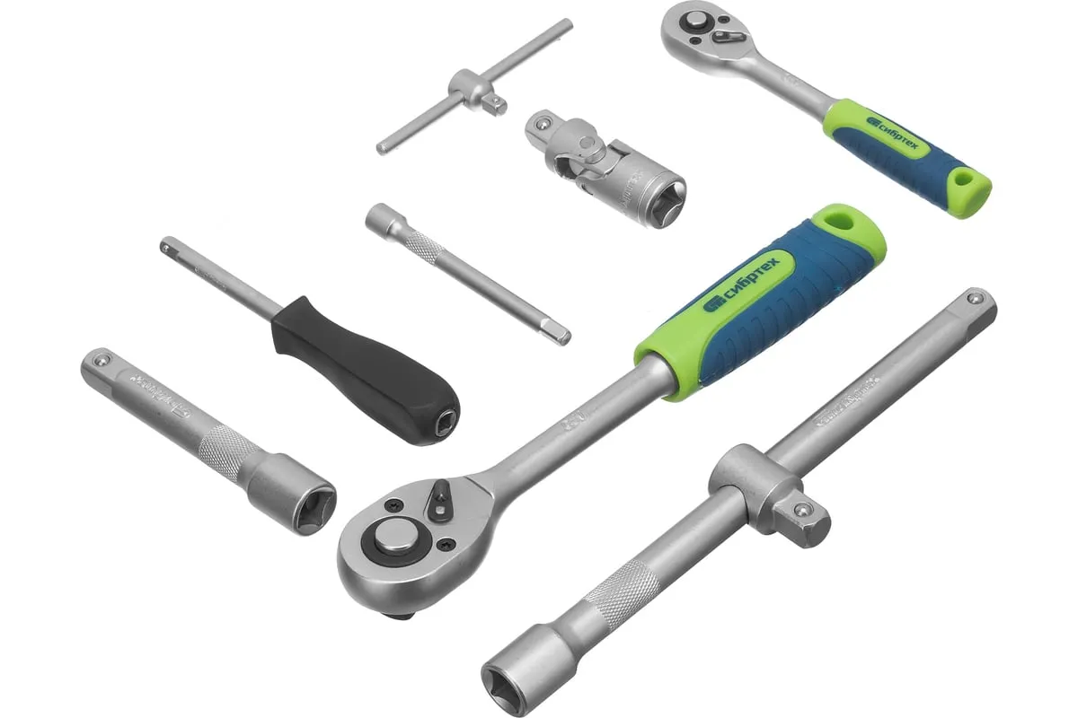 Набор инструментов Сибртех 13389 упакован в пластиковый кейс и состоит из 108 предметов с присоединительным размером 1/2" и 1/4", предназначенных для монтажа и демонтажа резьбового крепежа с разными типами шлицев. В комплект поставки входят карданы, удлинители и переходники, облегчающие работу в труднодоступных местах. Набор используется для ремонта автомобилей, а также полезен в быту