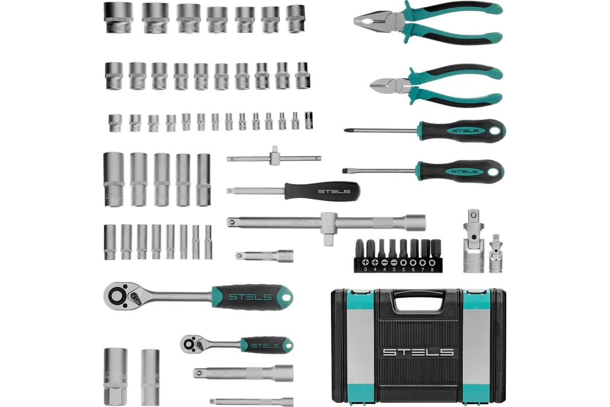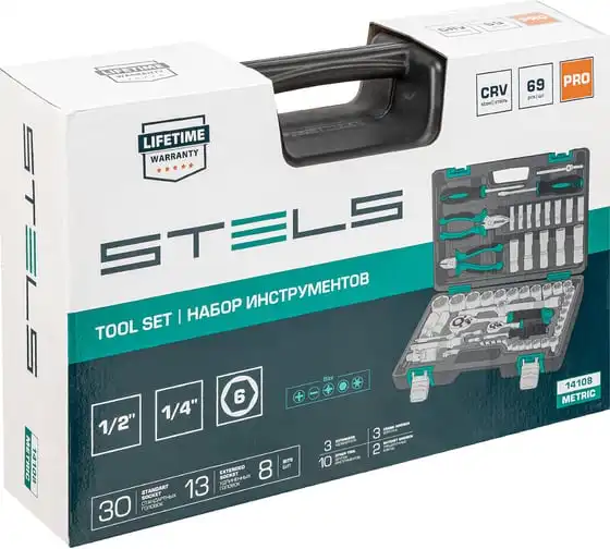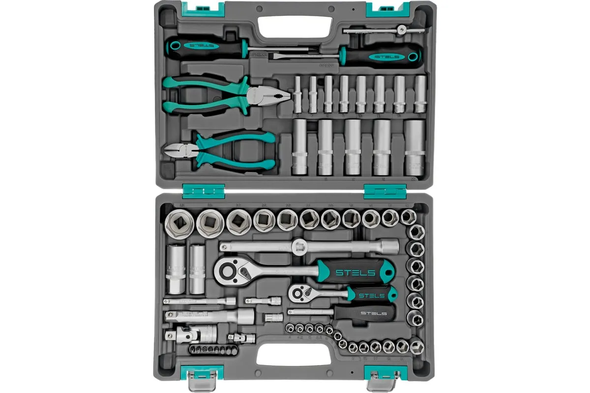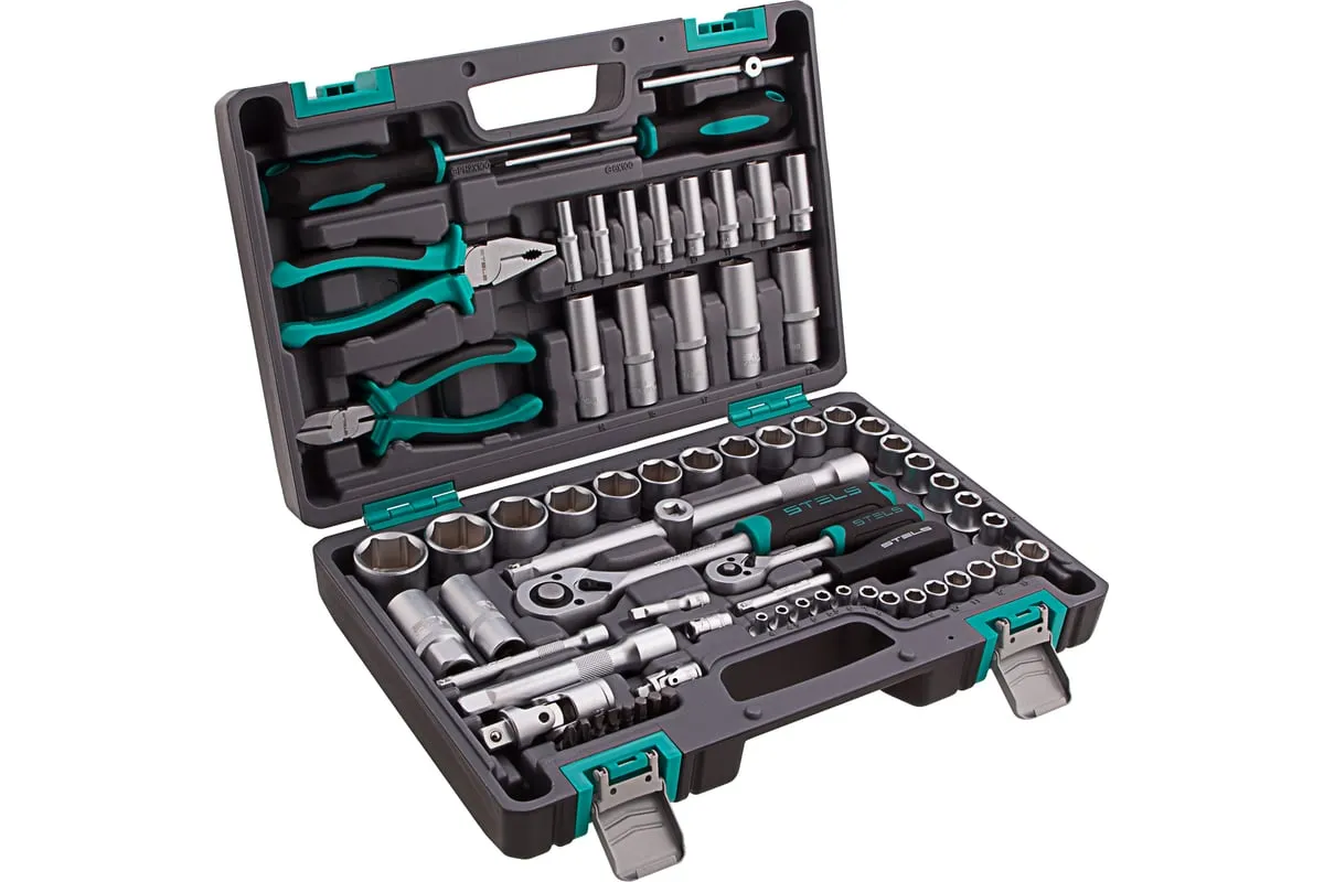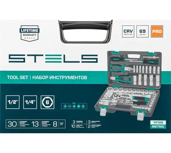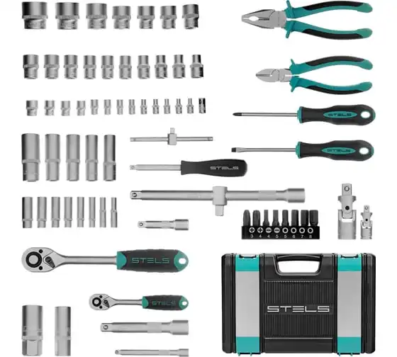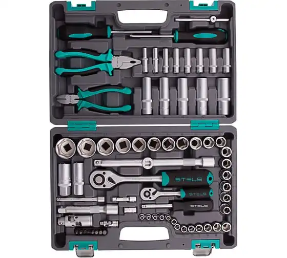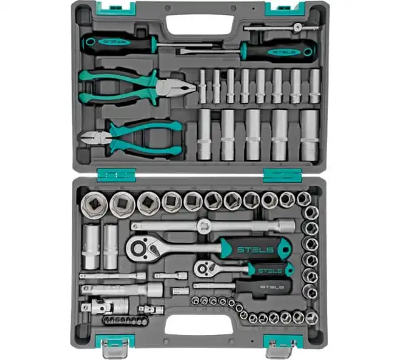 Набор инструментов Stels 14108 в пластиковом кейсе состоит из 69 предметов с присоединительными размерами 1/2" и 1/4", из стали CrV и S2, и предназначен для выполнения слесарно-монтажных работ. Включает инструменты и насадки для работы с резьбовыми крепежами, а также бокорезы и пассатижи, расширяющие возможности использования набора. Универсальный комплект будет полезен при проведении авторемонта в гараже или в поездке, а также пригодится дома или на даче.