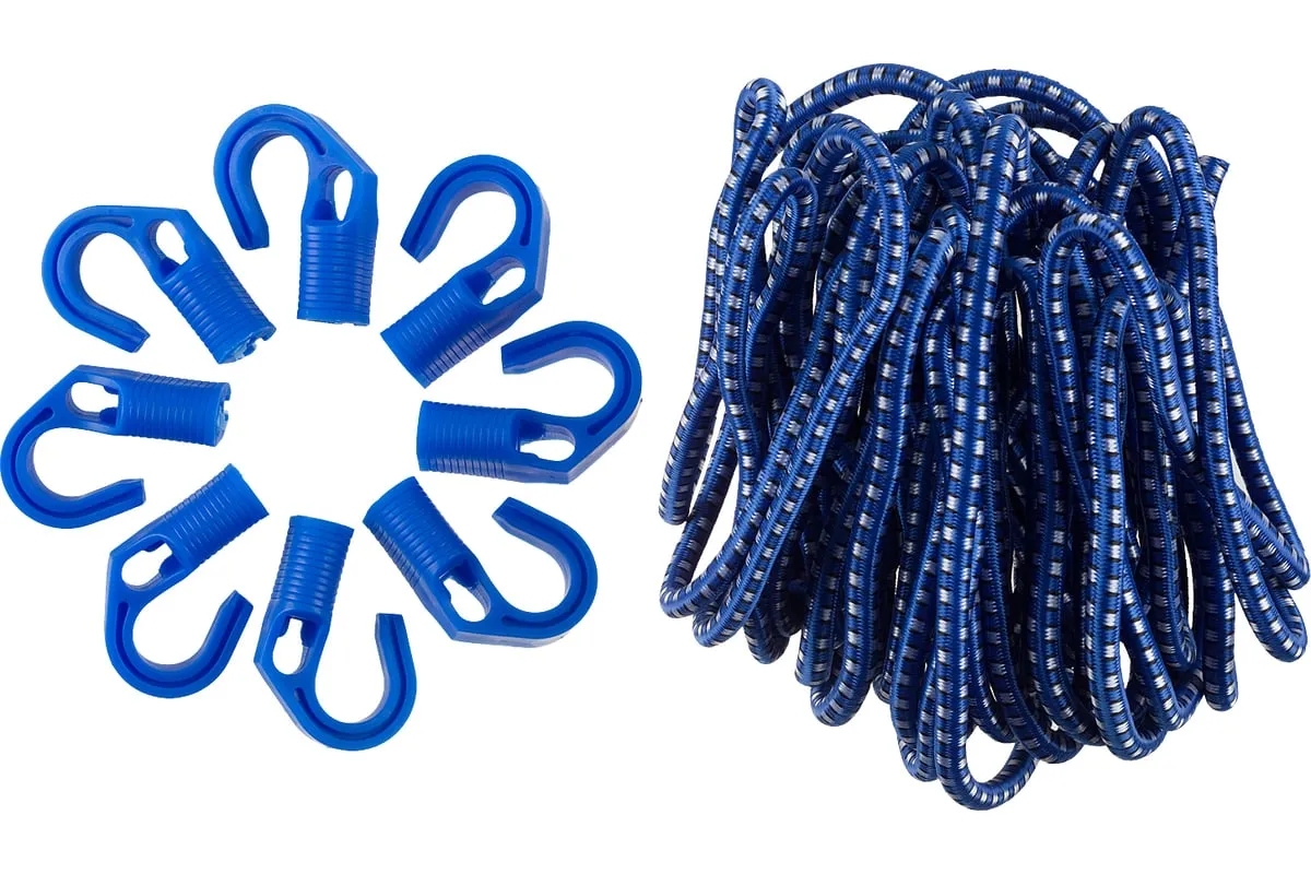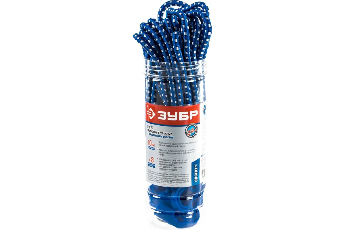 Набор из резинового крепежного шнура и переставных крюков ЗУБР 40511 предназначено для фиксации груза при транспортировке. Благодаря использованию высококачественного сырья шнур выдерживает нагрузку до 24кг.