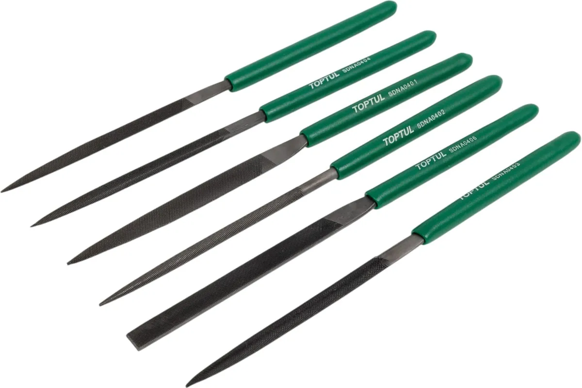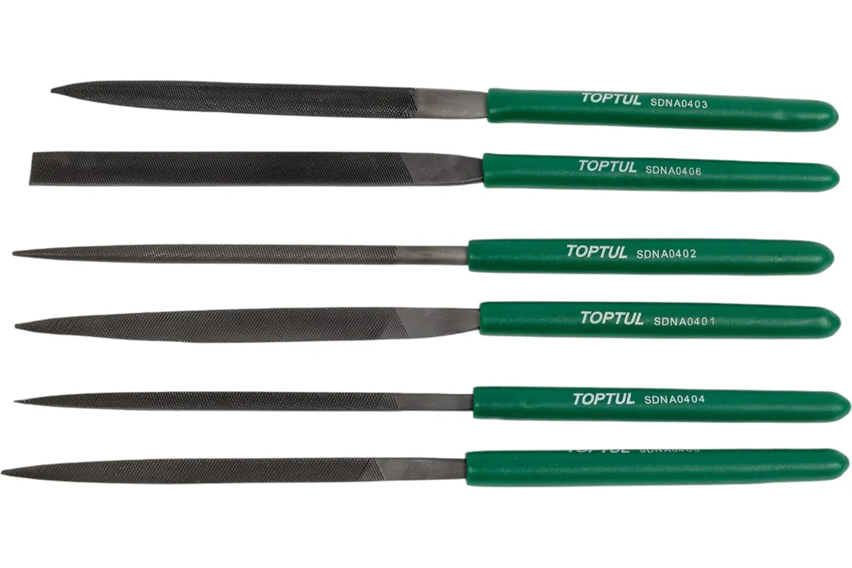 Набор надфилей TOPTUL 6 предметов GNBA0601 отличается высоким качеством обработки. Все модели изготовлены из инструментальной стали.