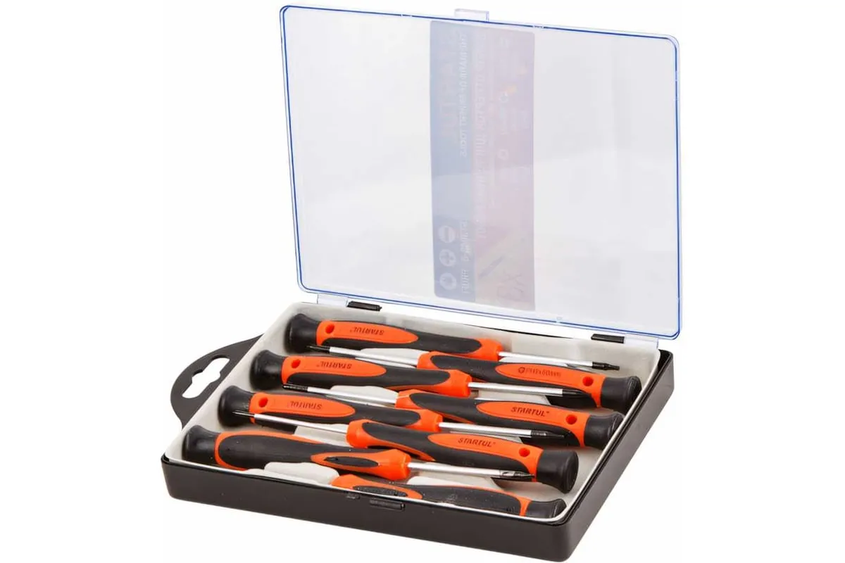 Набор отверток для точных работ STARTUL 8 предметов ST3048-8 используется для завинчивания и отвинчивания резьбовых соединений малого размера. Набор используется при выполнении работ с электроникой, часами и прочими мелкими соединениями.