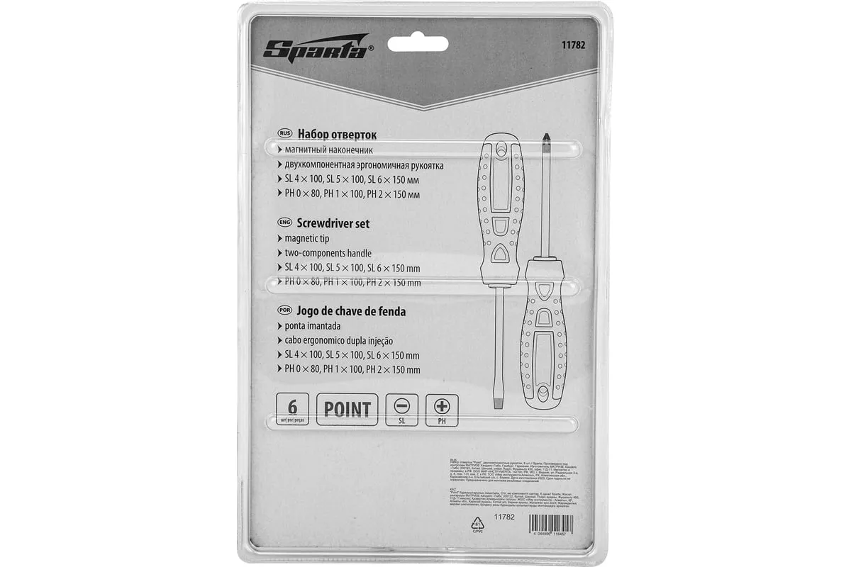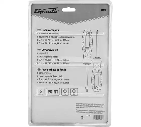 Набор отверток, CrV, двухкомпонентные рукоятки, 6шт SPARTA Point 11782 - комплект ручных монтажно-деомнтажных интурментов высокой прочности, надежности и эргономичности. Отвертки оснащены наконечниками самых распространенных размеров, что делает данный набор универсальным. Он подойдет для выполнения крепежных работ как дома, так и в профессиональной мастерской.