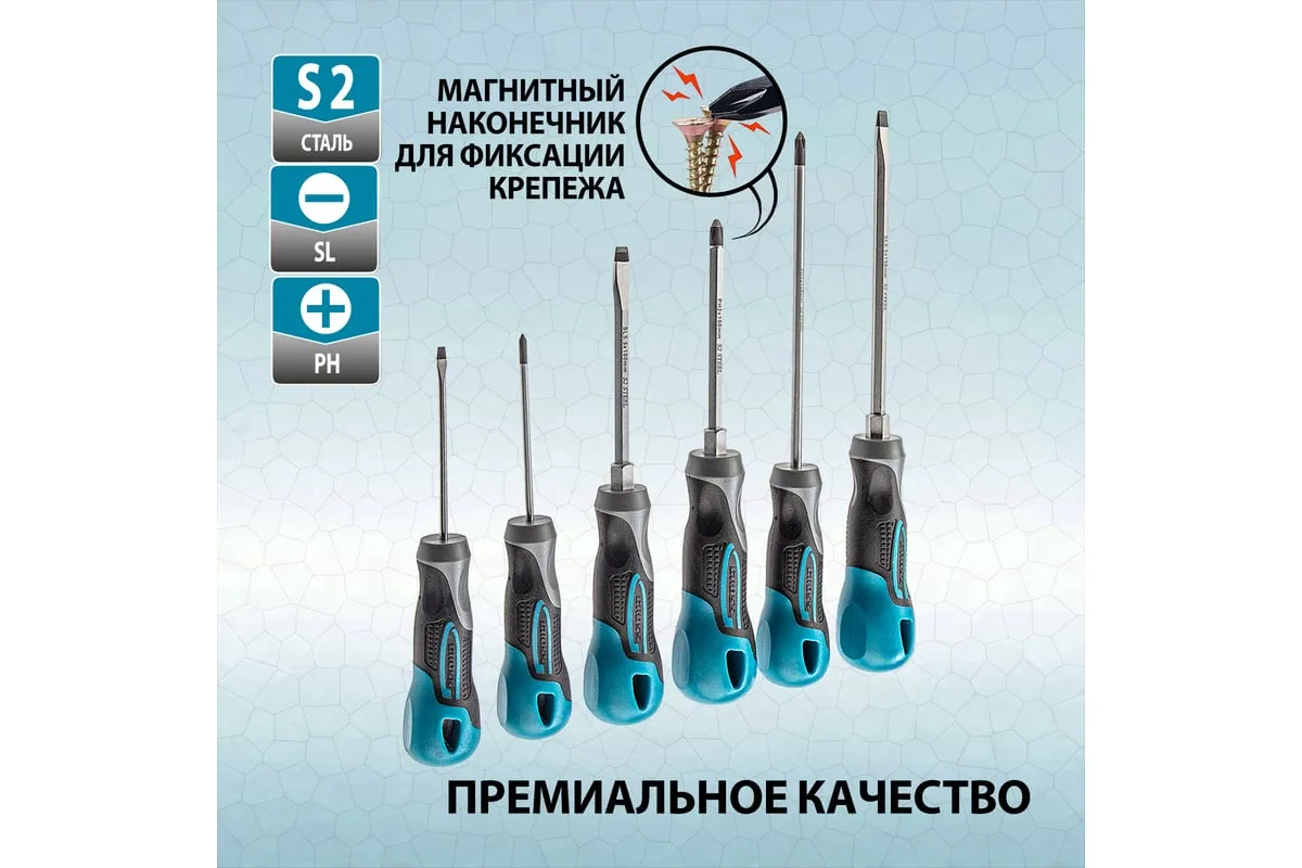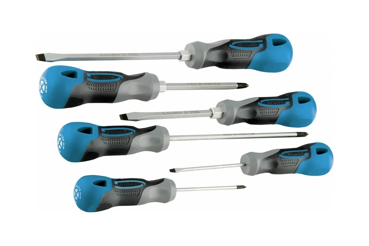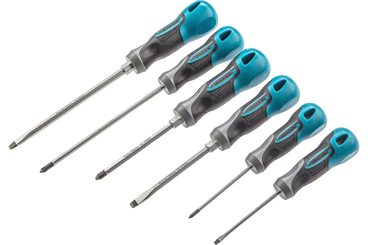 Набор отвёрток 6 шт S2 GROSS 12164 используют для ремонтных работ. В набор входит шесть стальных отверток разных размеров. Они имеют эргономичную рукоятку и стержень с намагниченным наконечником, который обеспечивает плотное соприкосновение с головкой крепежа.