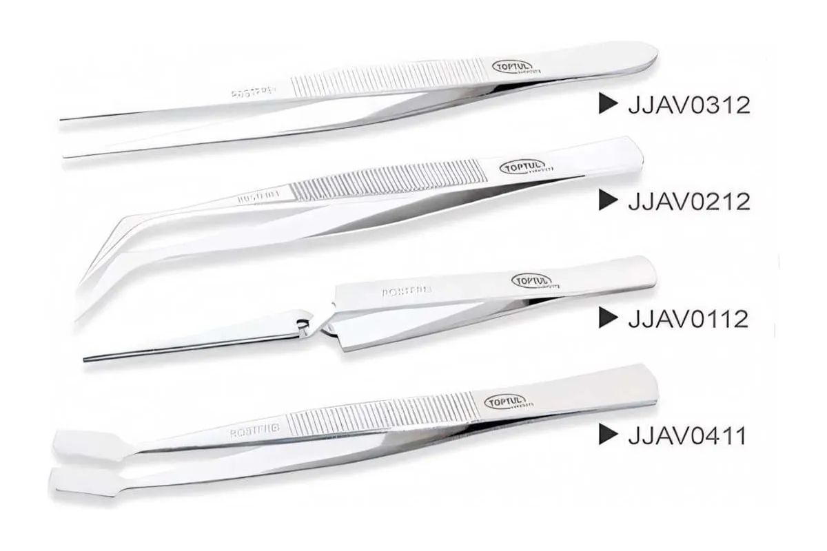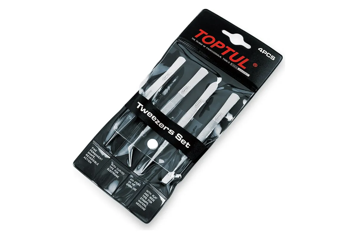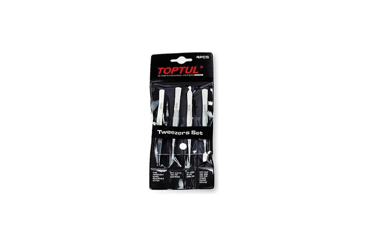 Набор пинцетов TOPTUL 4 предмета JGAA0401 изготовлен из качественной нержавеющей стали, предназначен для точных работ с мелкими деталями и узлами.