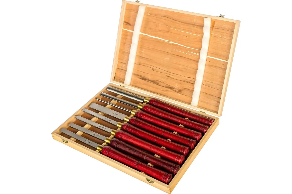 Резцы в наборе Энкор 10430 различного профиля, изготовлены из быстрорежущей стали. Рукоятки деревянные, длинные, покрытые лаком, удобные для удержания двумя руками. В комплекте 8 шт.