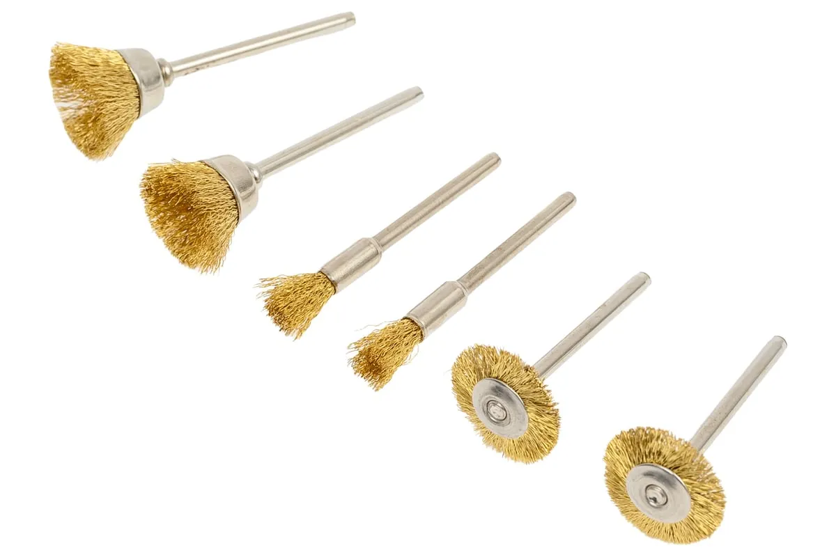 Набор щеток для гравера латунных WORTEX 6 предметов (1335684) - идеальное решение для шлифовки и очистки мелких деталей и труднодоступных мест.