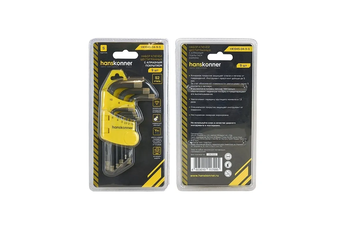 Набор шестигранных ключей предназначен для слесарных и монтажных работ в быту, является универсальным инструментом для работы с наиболее распространенными размерами крепежных изделий. Г-образная форма увеличивает крутящий момент. Набор размещается в пластиковом футляре, который удобен для хранения и транспортировки. Рабочая часть выполнена из стали марки S2, наконечник с алмазным покрытием, что обеспечивает прочность и износостойкость.