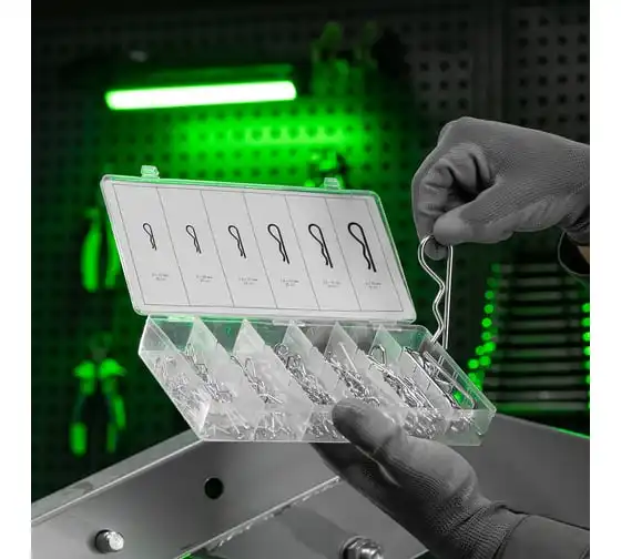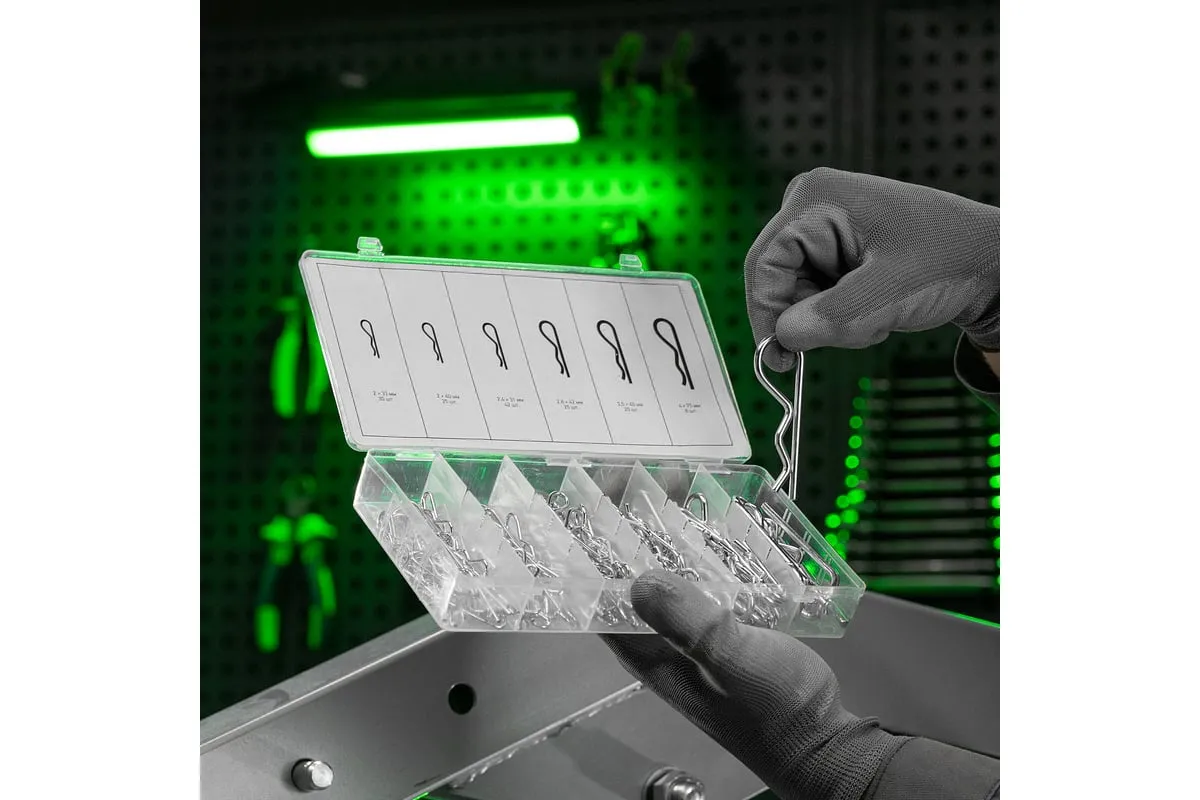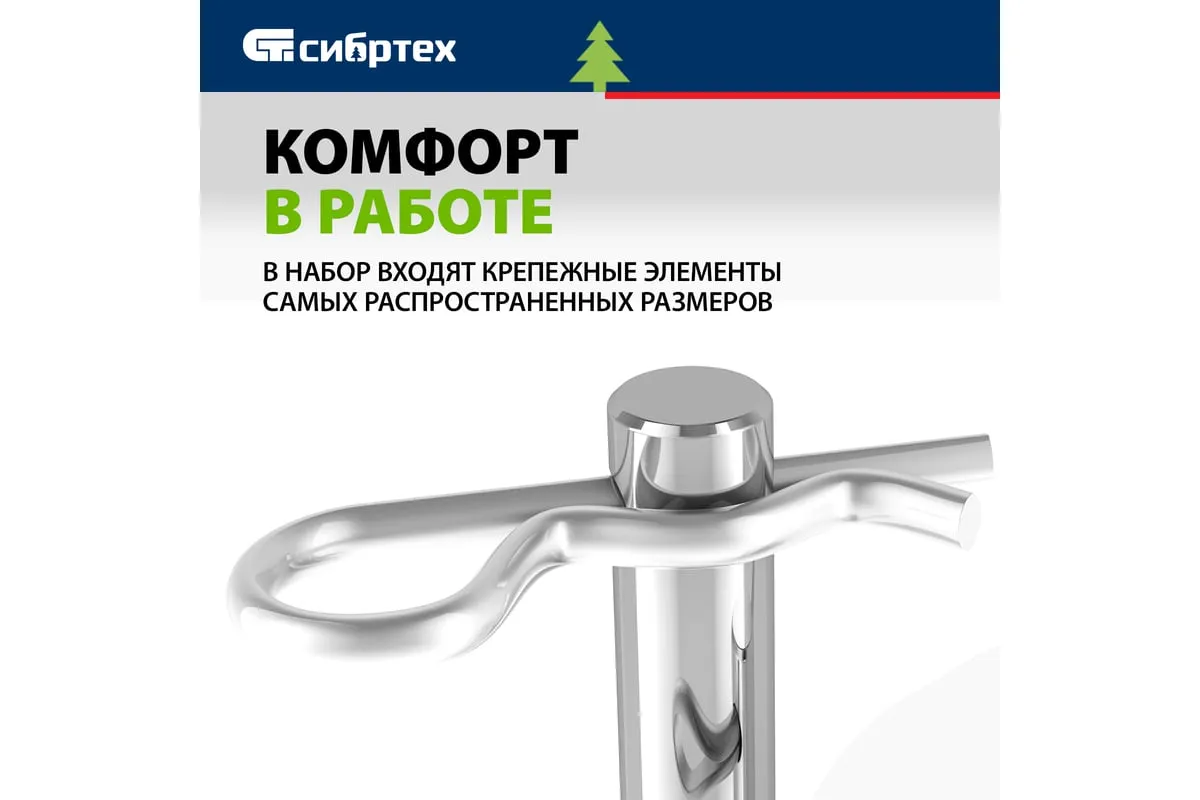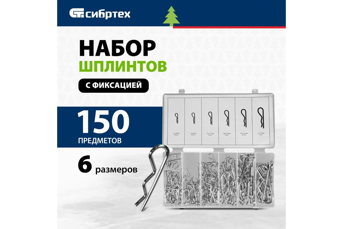 Набор шплинтов СИБРТЕХ 150 предметов 47605 имеет ассортимент крепежа, предназначенного для фиксации в отверстия штифтов, шайб, гаек и т. п. Изделия изготовлены из стали. В набор входят наиболее ходовые размеры шплинтов. Кейс изготовлен из пластика, имеет отсеки под каждый размер и обеспечивает компактность хранения.