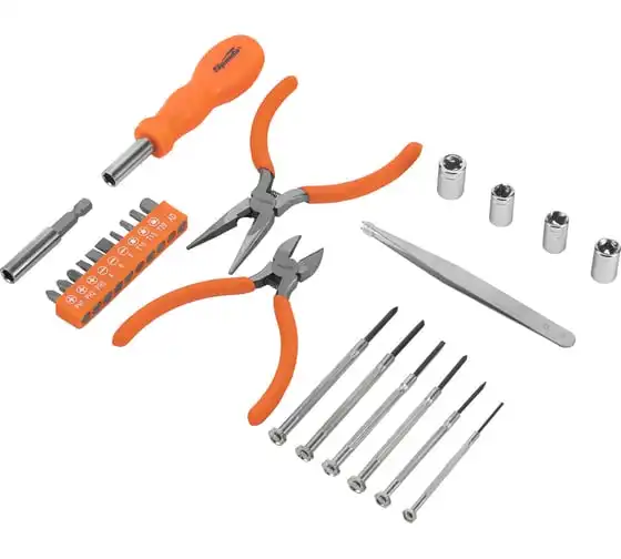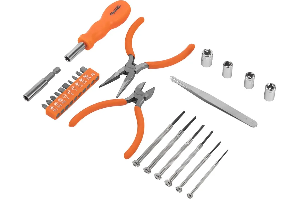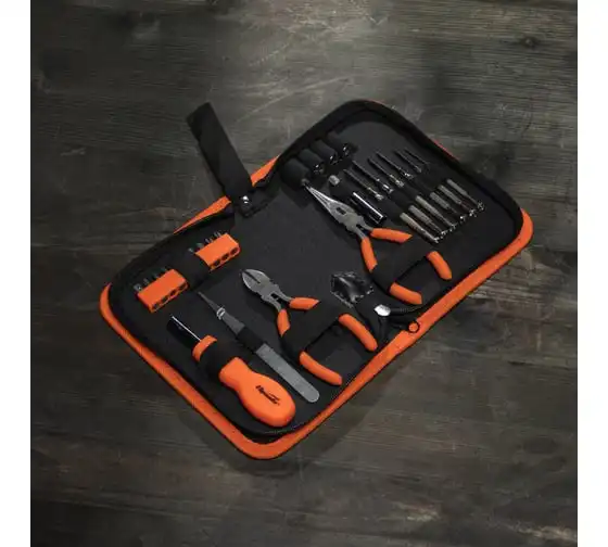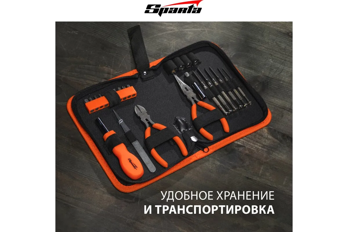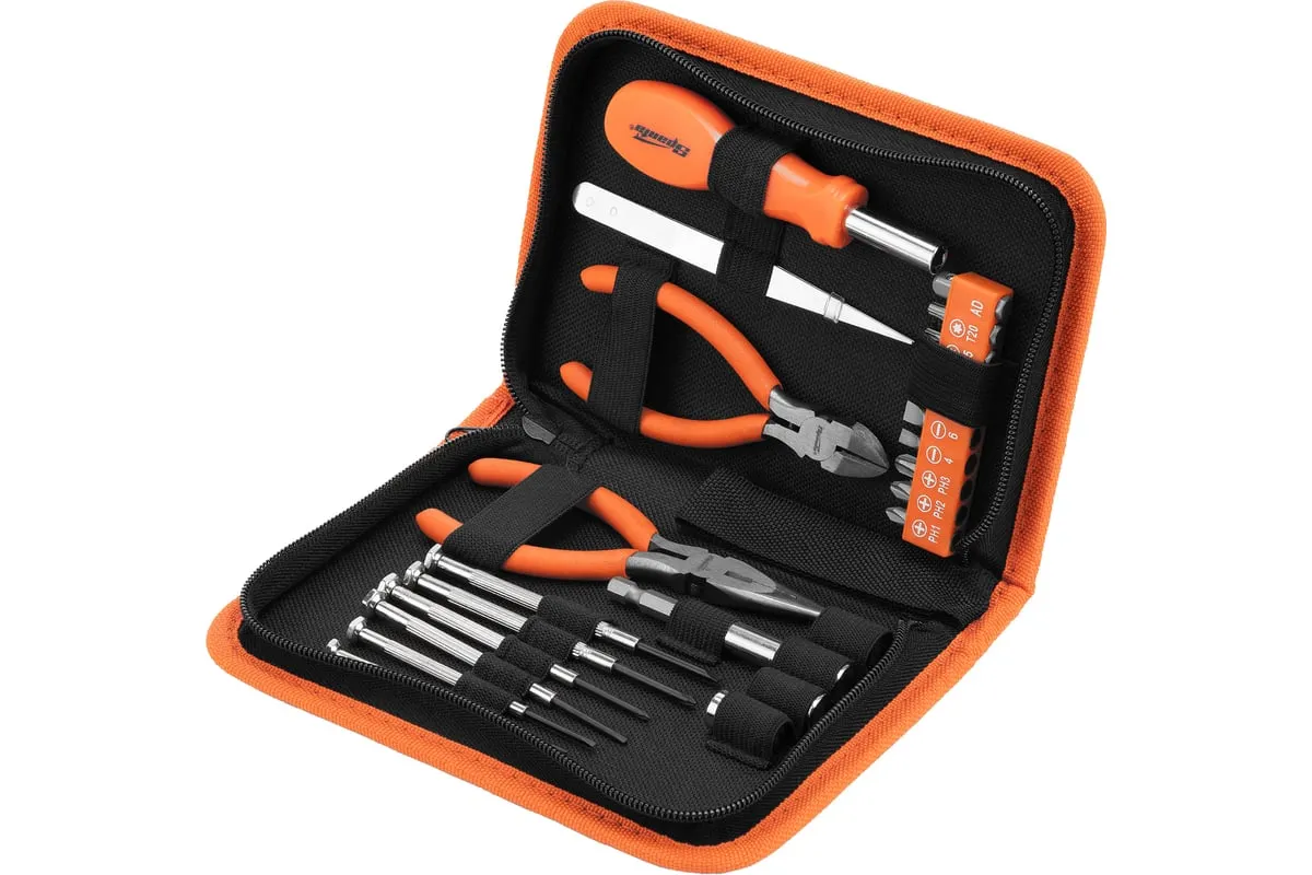 Набор слесарно-монтажного инструмента SPARTA 25 шт 13534 является многофункциональным комплектом для проведения различных столярных работ, включая ремонт и обслуживание резьбовых соединений. Все рабочие элементы набора изготовлены из высококачественной стали. Рукоятки инструментов выполнены из пластика, который обеспечивает надежное удержание. Комплект поставляется в пенале на молнии.