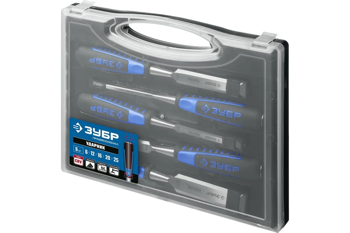 Набор стамесок-долот ЗУБР Ударник 5 шт 18097-H5 представляет собой комплект профессионального инструмента. Изготовлен из высококачественной инструментальной стали и соответствуют высоким техническим требованиям. Все модели обладают повышенным ресурсом и обеспечивают длительную и качественную работу.