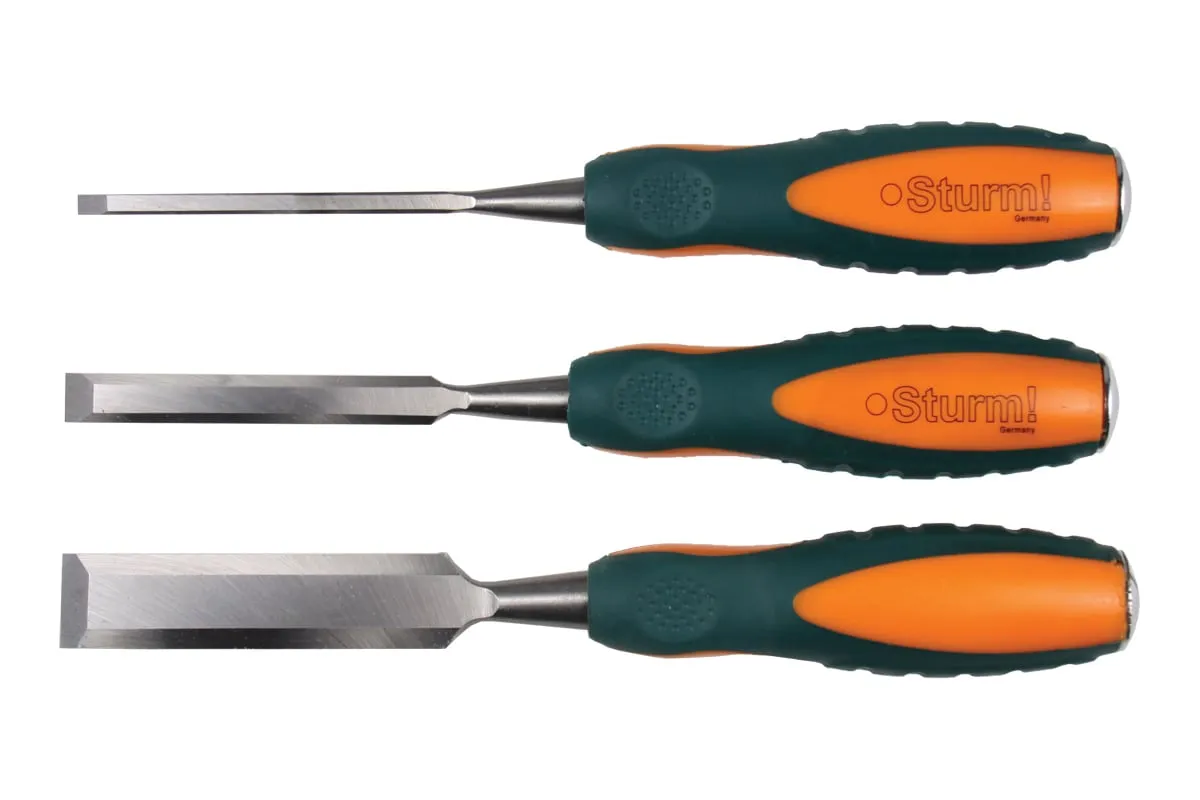 Набор стамесок Sturm 1063-04-S3 подходит для столярных работ по мягкому и твердому материалу. Состоит из 3 стамесок разной ширины. В ручке находится сплошной металлический стержень, что позволяет производить по инструменту удары молотком. Лезвия из легированной инструментальной стали обладают высокой прочностью.