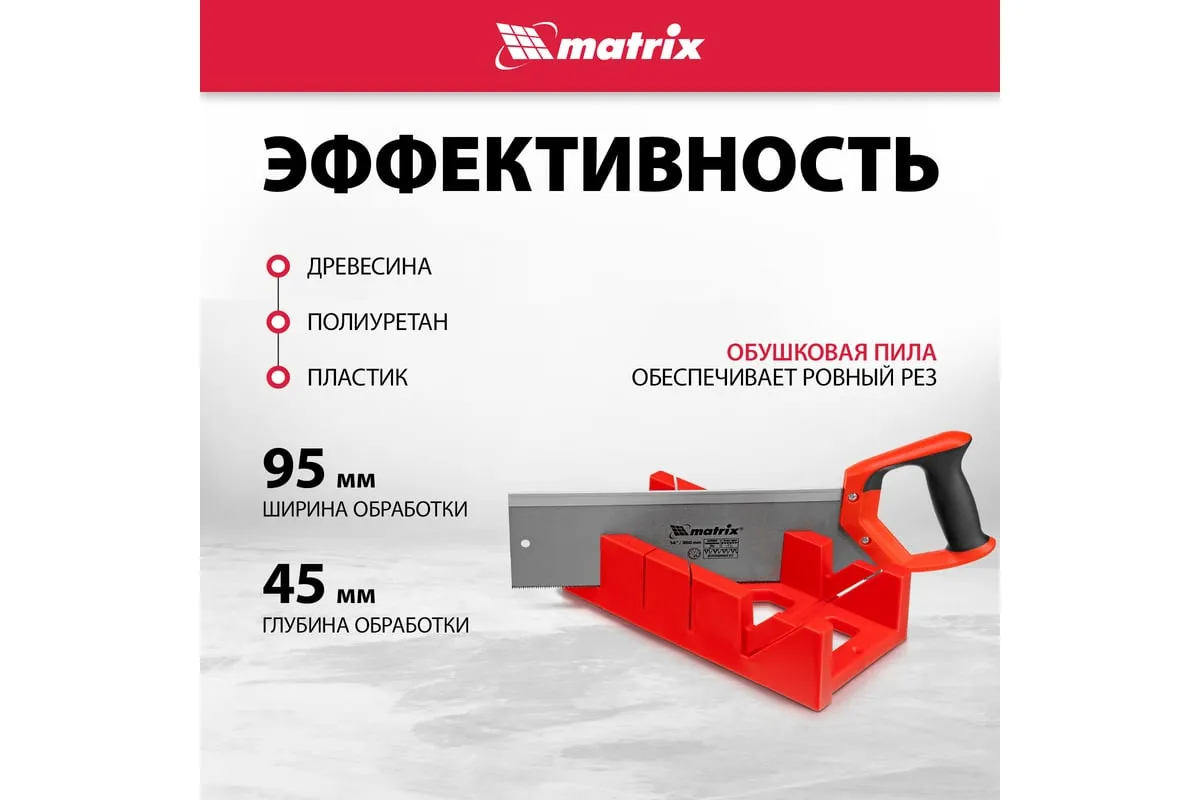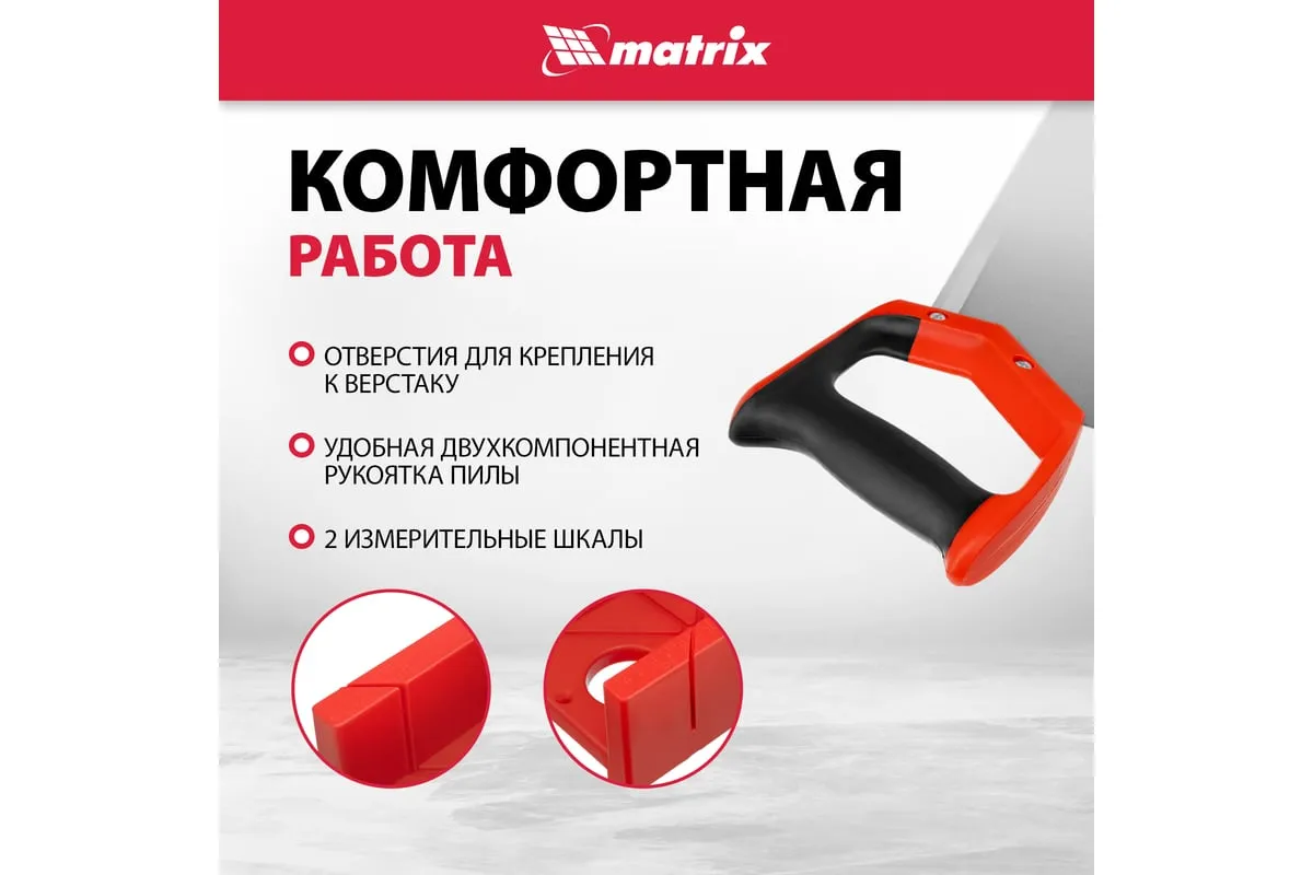 Набор стусло + обушковая пила MATRIX 22550 предназначен для бытового и профессионального использования. Стусло помогает распиливать заготовки средней и малой толщины из древесины, пластика, полиуретана строго под заданным углом. Пила имеет мелкие острые зубья, прошедшие дополнительную закалку, что обеспечивает качественное выполнение работы.