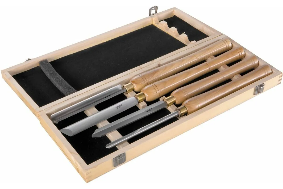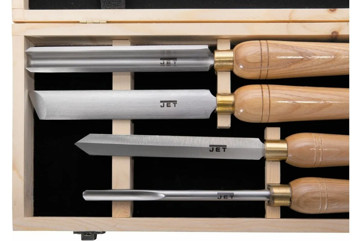 Набор токарных резцов HSS 4 шт JET 19500119 применяется для обработки древесины на токарном станке по дереву. Резцы изготовлены из качественной быстрорежущей стали HSS. Токарные резцы имеют длинную рукоятку из ясеня, набор поставляется в деревянной коробке.