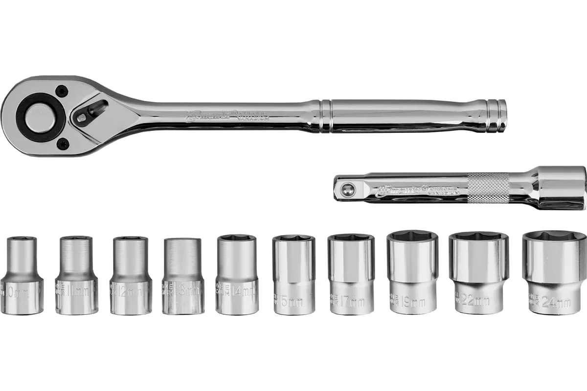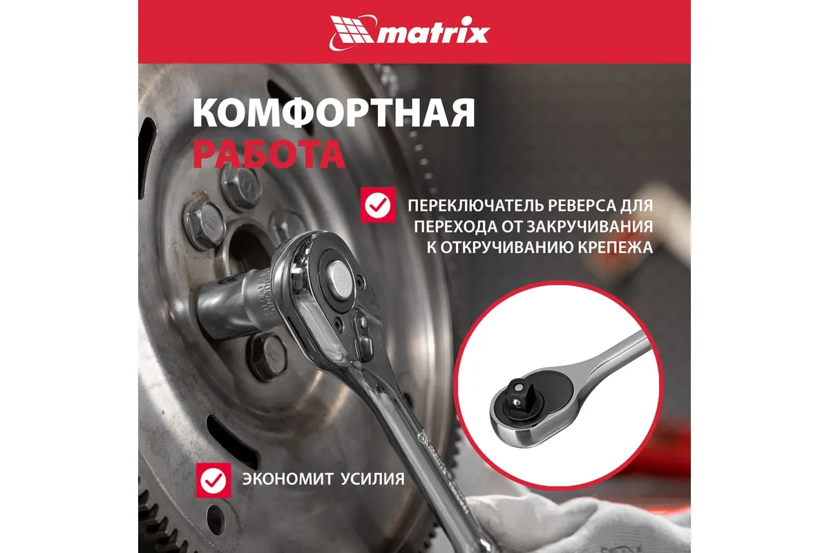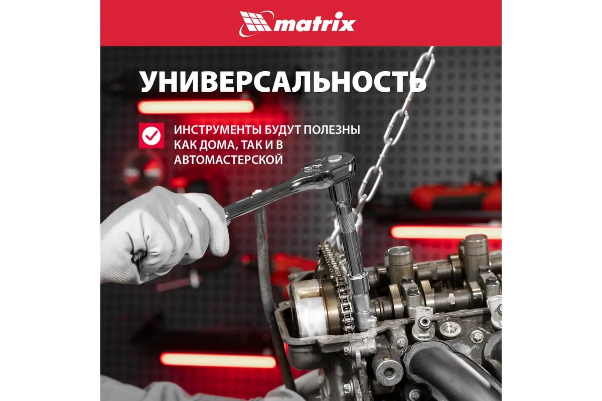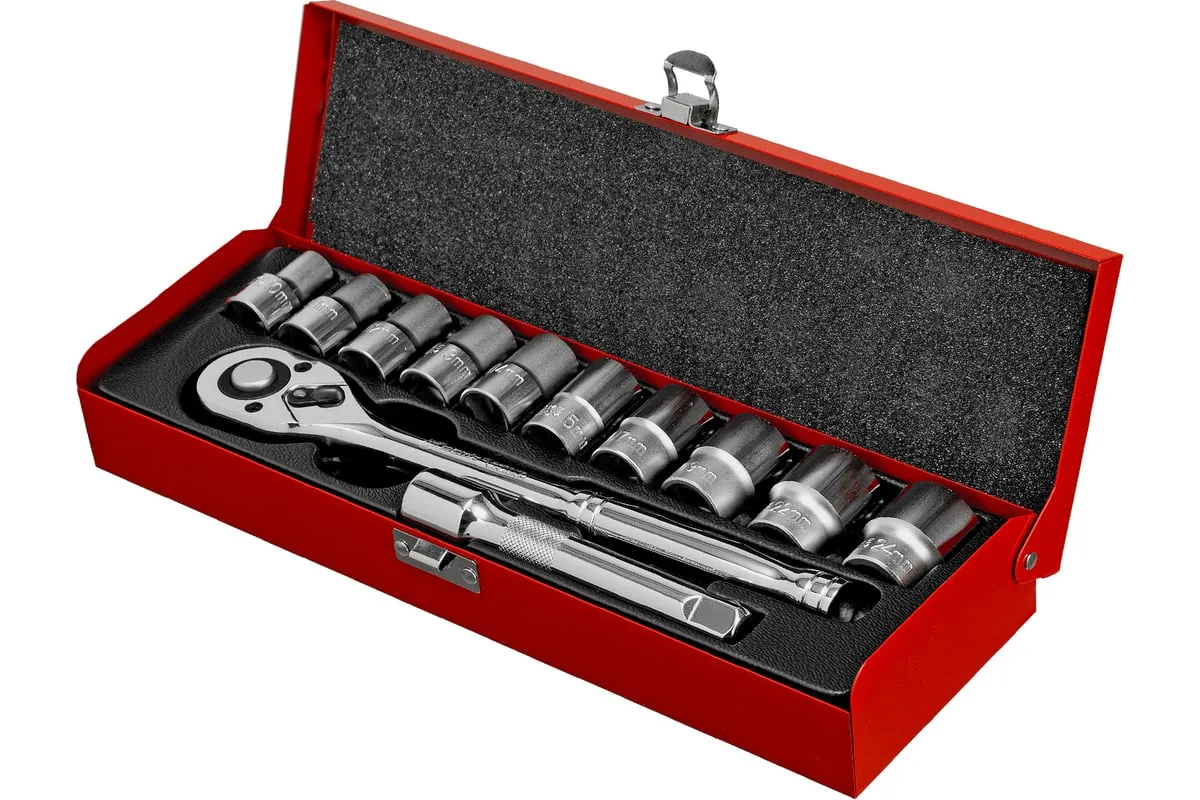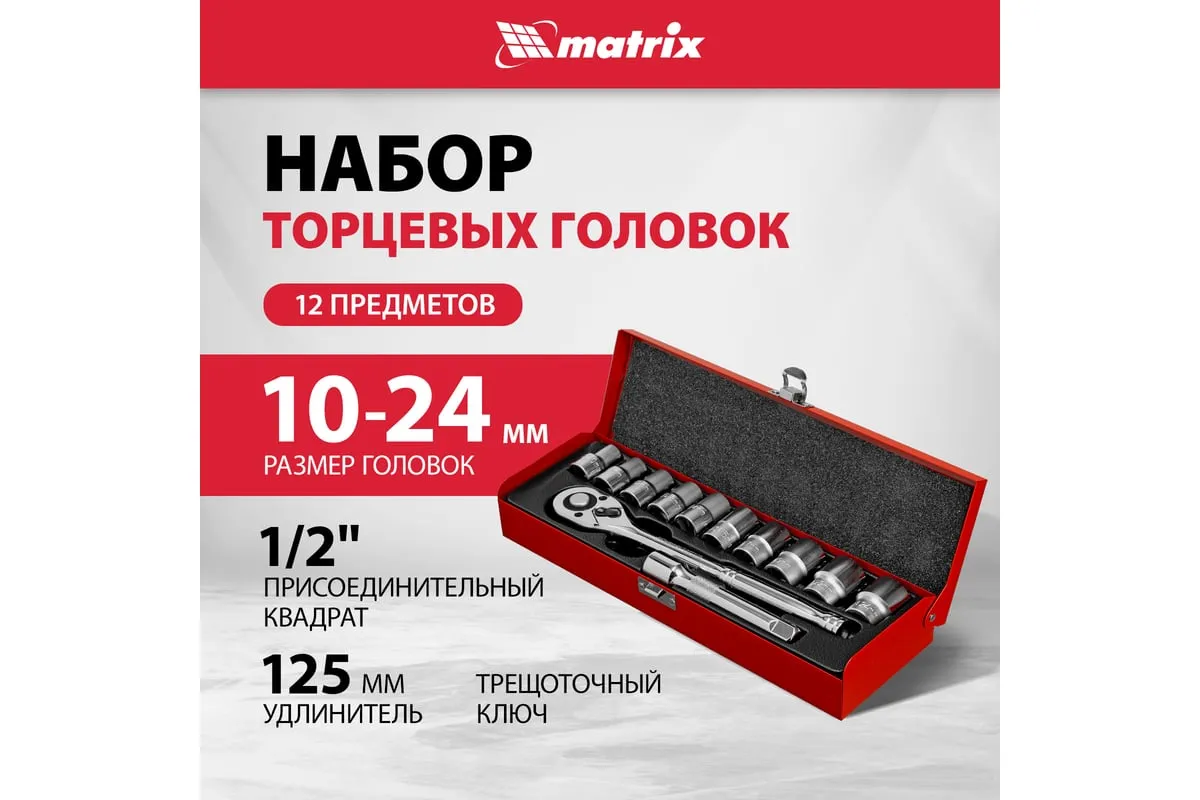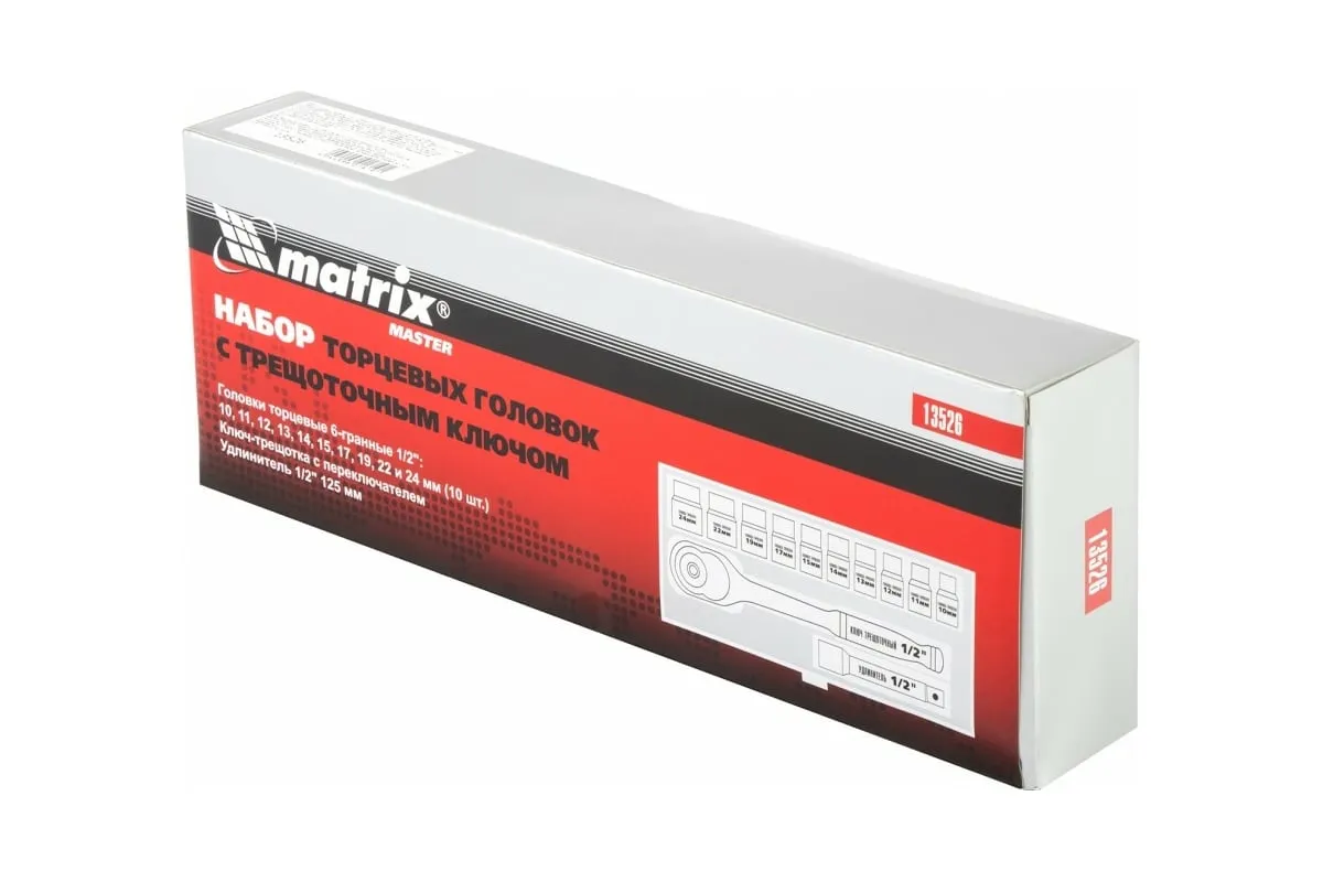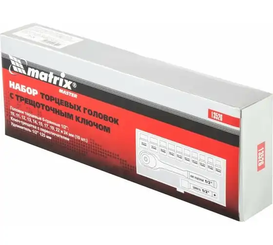 Набор торцевых головок MATRIX MASTER 13526 предназначен для слесарно-монтажных работ. Поставляется в металлическом кейсе для удобного хранения и транспортировки. Состоит из ключа-трещотки, удлинителя и 10 головок с шестигранным зевом и посадочным местом для присоединительного квадрата 1/2". Инструменты выполнены из высококачественной стали и имеют хромоникелевое покрытие для лучшей защиты от коррозии.