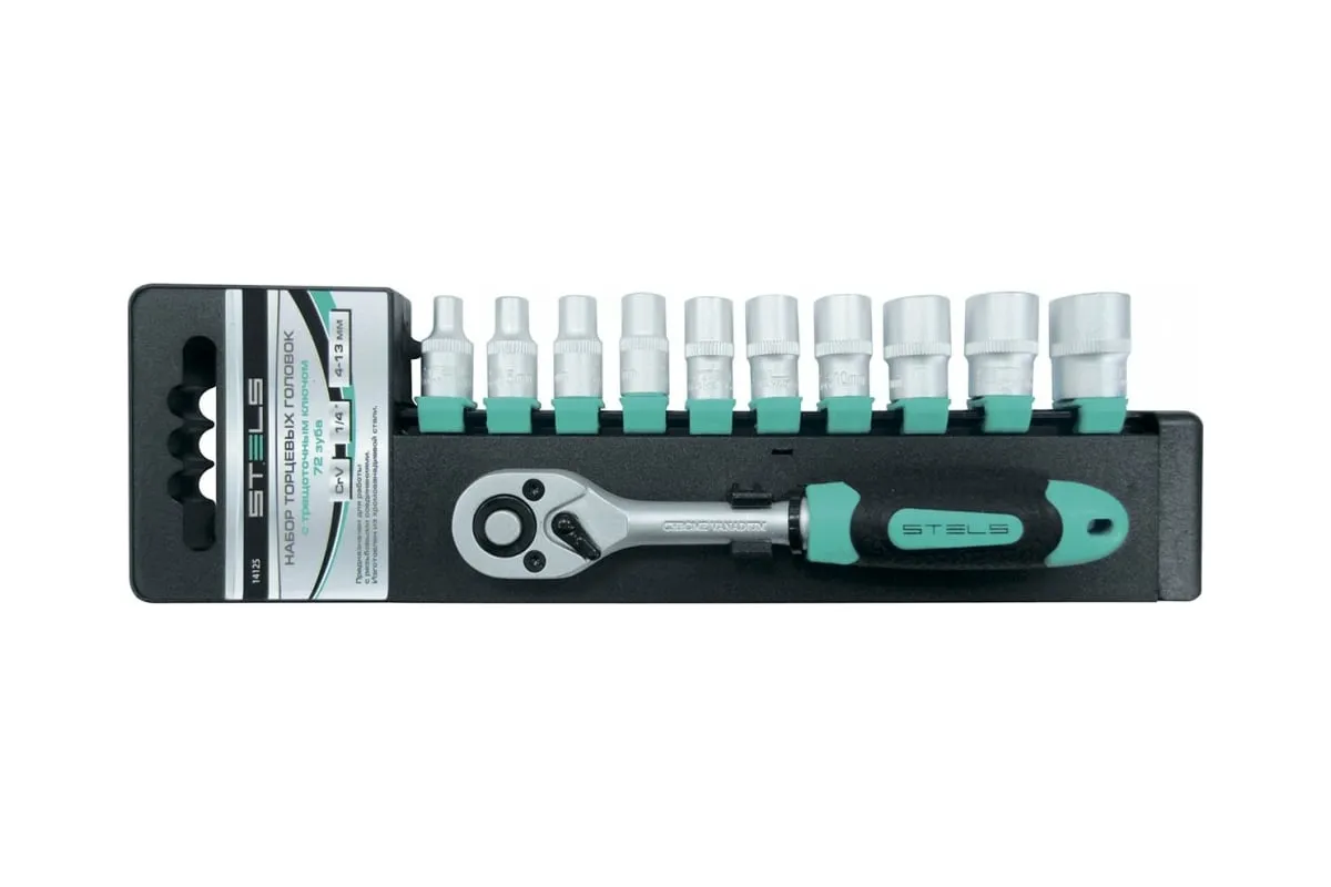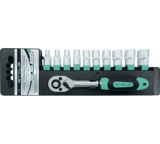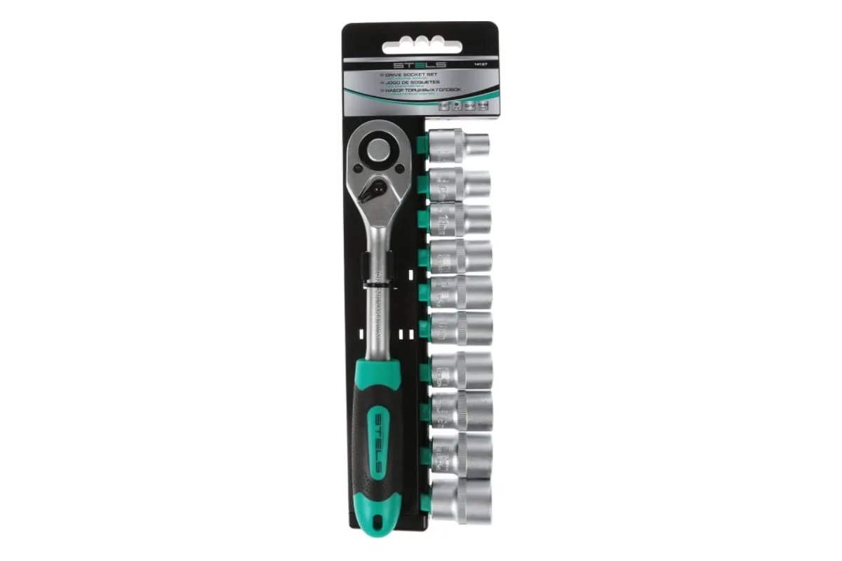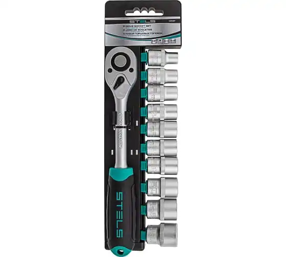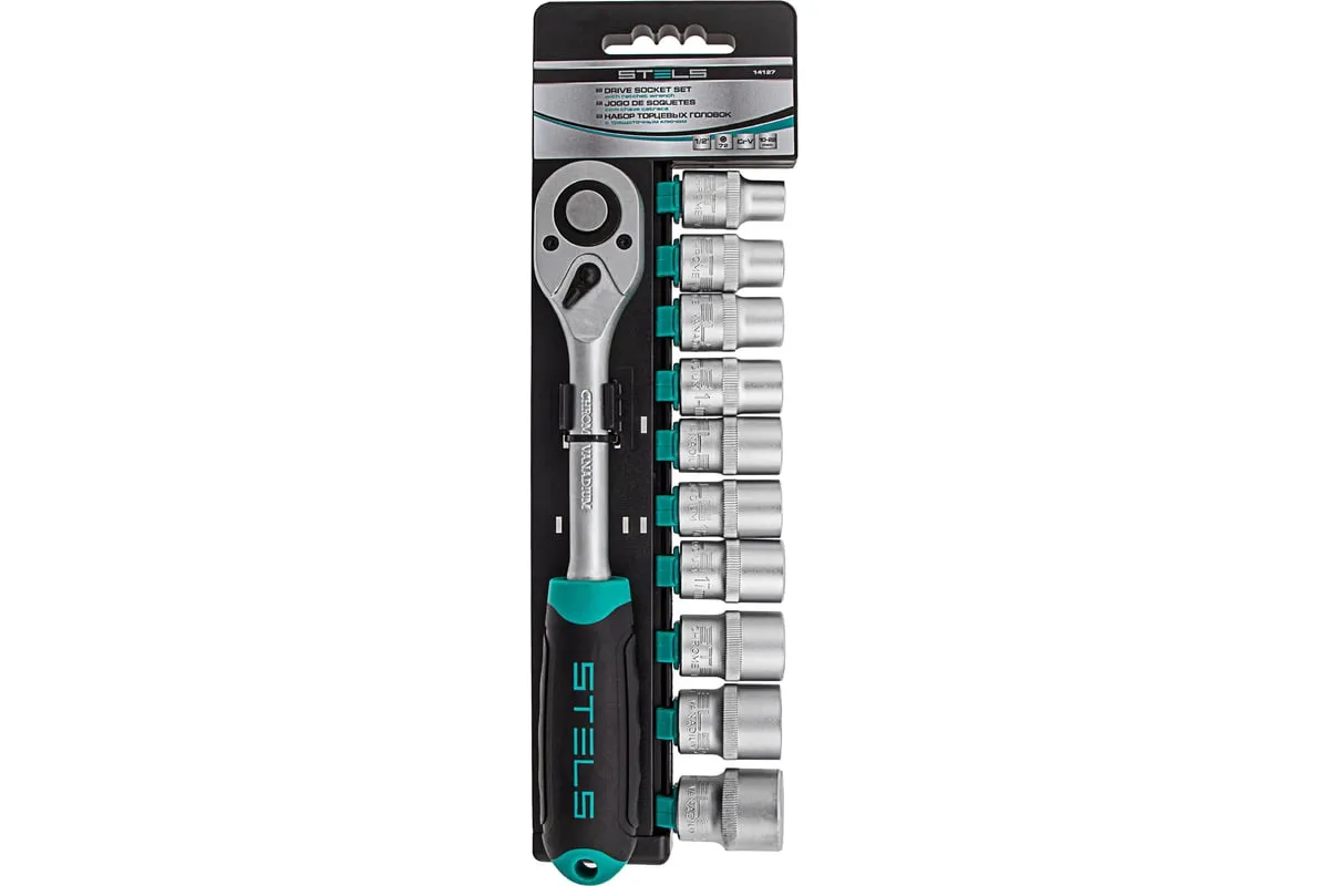 Набор торцевых головок STELS 1/2 11 предметов 14127 используется при монтаже и демонтаже резьбовых соединений с квадратом 1/2". Все рабочие части набора выполнены из прочной хромованадиевой стали. Ключ с матовым хромированием покрытия оснащен трещоткой с 72 зубьями. Переключатель реверса фиксируется в двух положениях. Комплект хранится на пластиковом держателе. Подвесная карта (размеры) 325х100х15 мм.