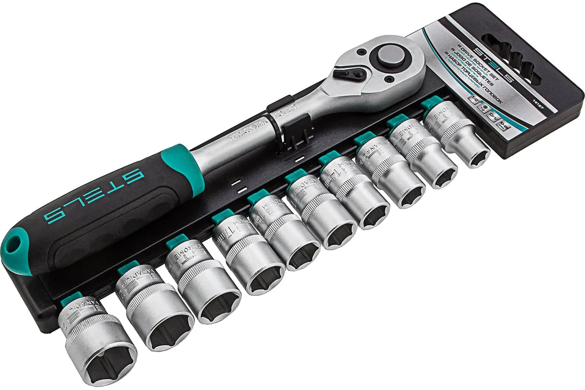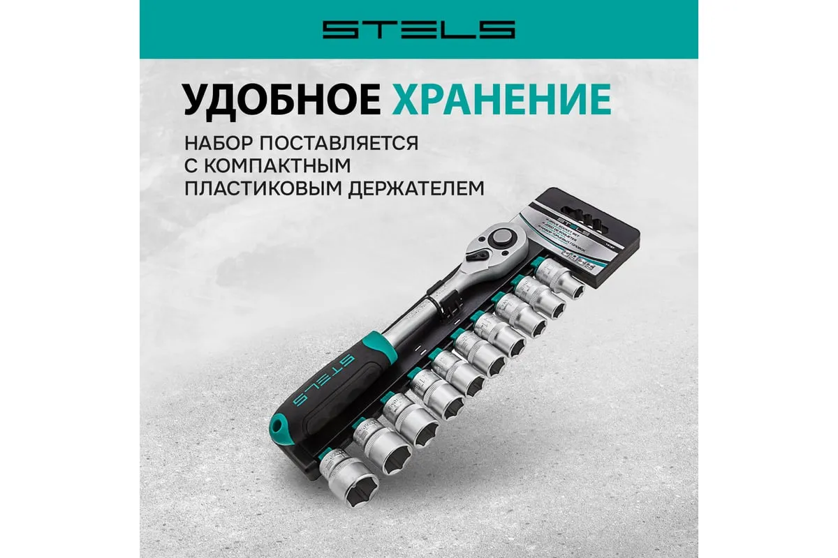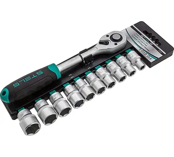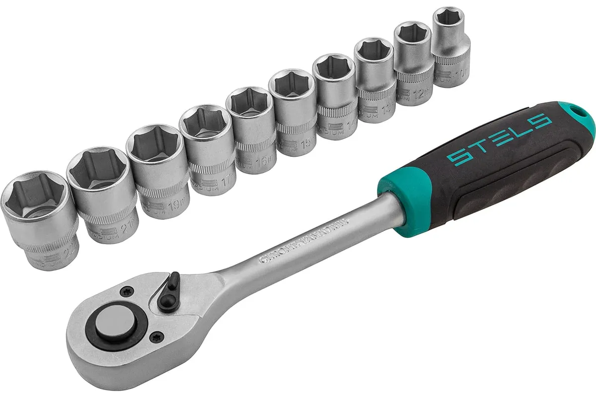 Набор торцевых головок STELS 1/2 11 предметов 14127 используется при монтаже и демонтаже резьбовых соединений с квадратом 1/2". Все рабочие части набора выполнены из прочной хромованадиевой стали. Ключ с матовым хромированием покрытия оснащен трещоткой с 72 зубьями. Переключатель реверса фиксируется в двух положениях. Комплект хранится на пластиковом держателе. Подвесная карта (размеры) 325х100х15 мм.