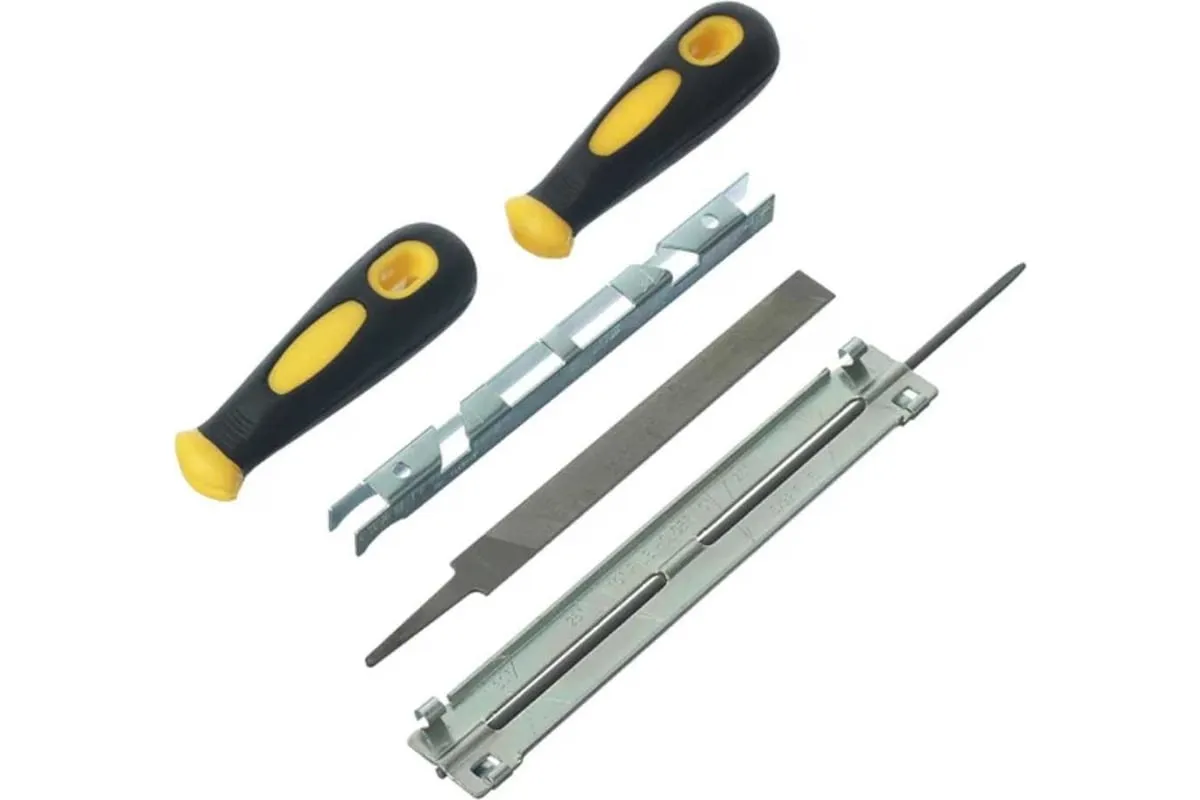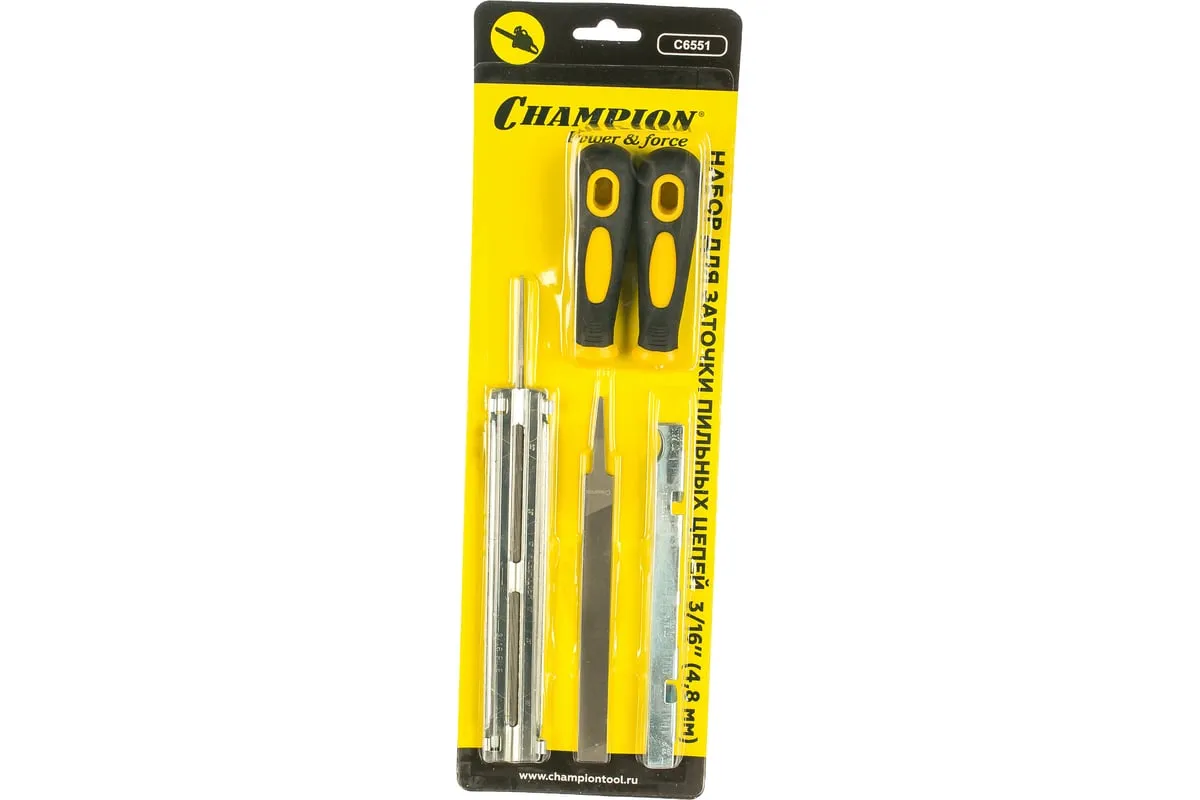 Набор заточной DELUXE Pro CHAMPION C6551/C225 используется для заточки пильных цепей c шагом 0,325" и шириной паза 1,3 мм; 1,5 мм; 1,6 мм. Комплект облегчит подготовку пильной цепи к работе. Правильно заточенная цепь упростит вашу работу и повысит безопасность. Ручки для напильников помогут сделать работу более комфортной. Направляющая позволяет двигаться в нужном направлении заточки, делая работу более безопасной и точной.