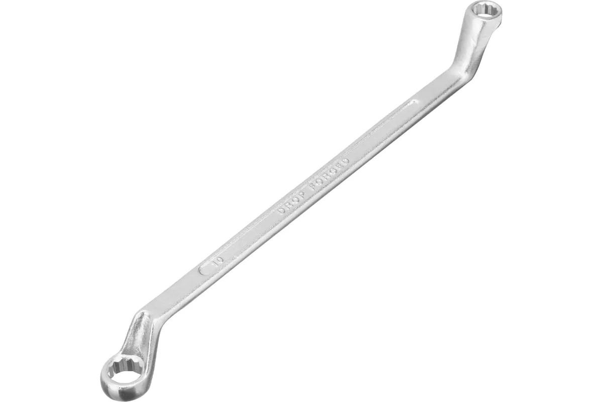 Накидной коленчатый ключ Sparta 147365 с хромированной поверхностью используется для монтажа и демонтажа резьбового крепежа с шестигранной головкой диаметром 8 и 10 мм. Пригодится для выполнения монтажных работ в гараже, на небольшом производстве и в быту. Кольцевой зев полностью захватывает шляпку крепежного элемента, поэтому ключом легко откручивать даже закисшие болты и гайки.